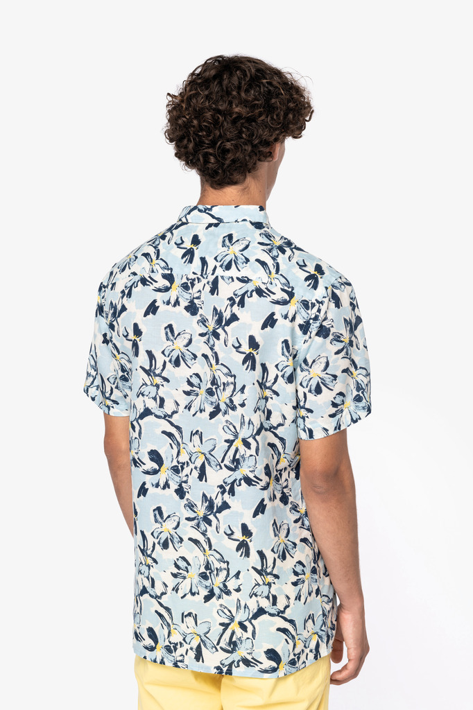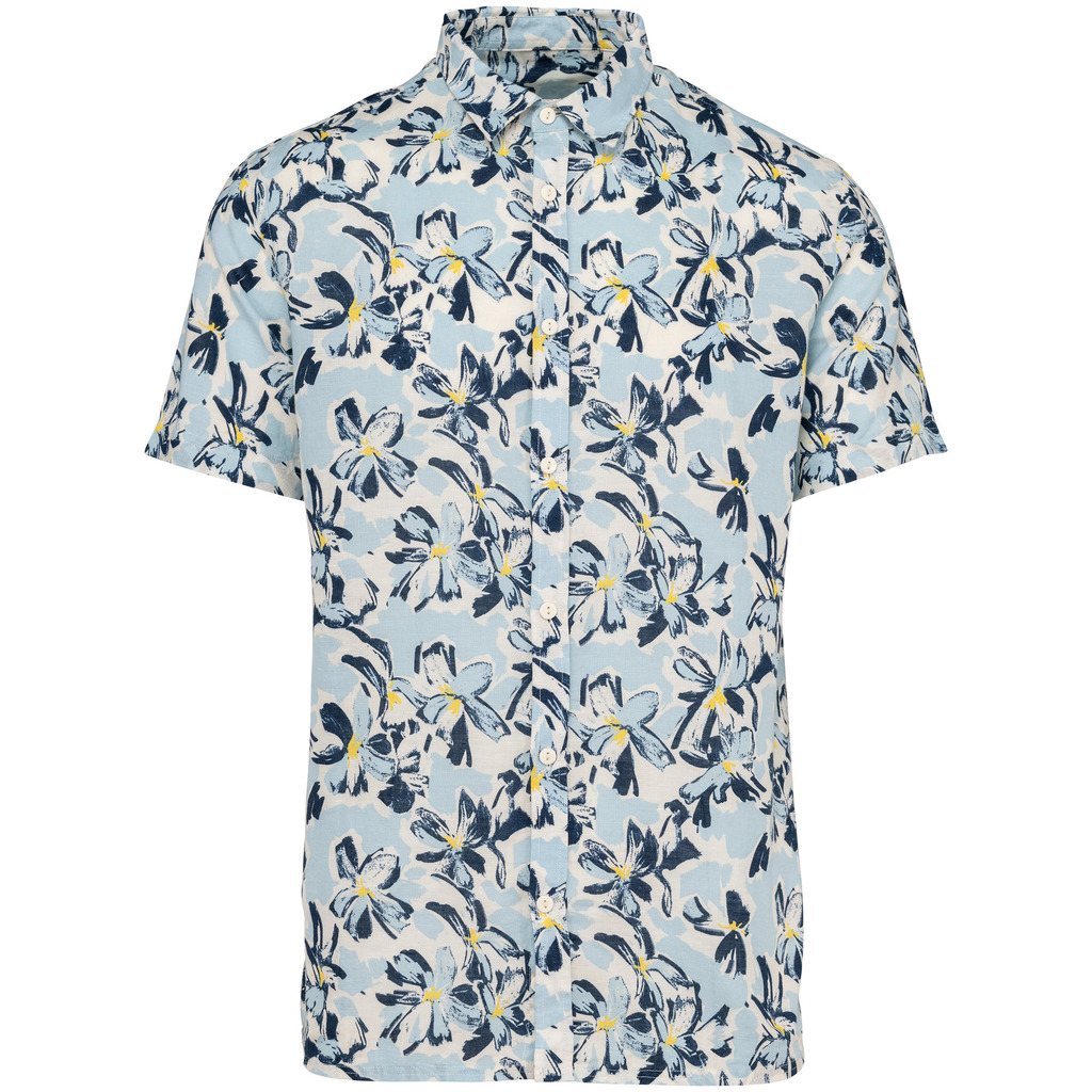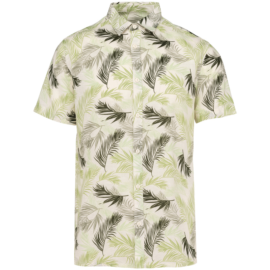 62% linho / 38% algodão biológico. Tecida. Corte justo. Costuras laterais. Colarinho da camisa com suportes. Carcela com botões em contraste. Padrão contÃnuo. Encaixe nas costas. Ombros e cavas com pesponto duplo. Costura dupla nos punhos e na bainha. Peça lavada após montagem: as cores podem variar ligeiramente de produto para produto.