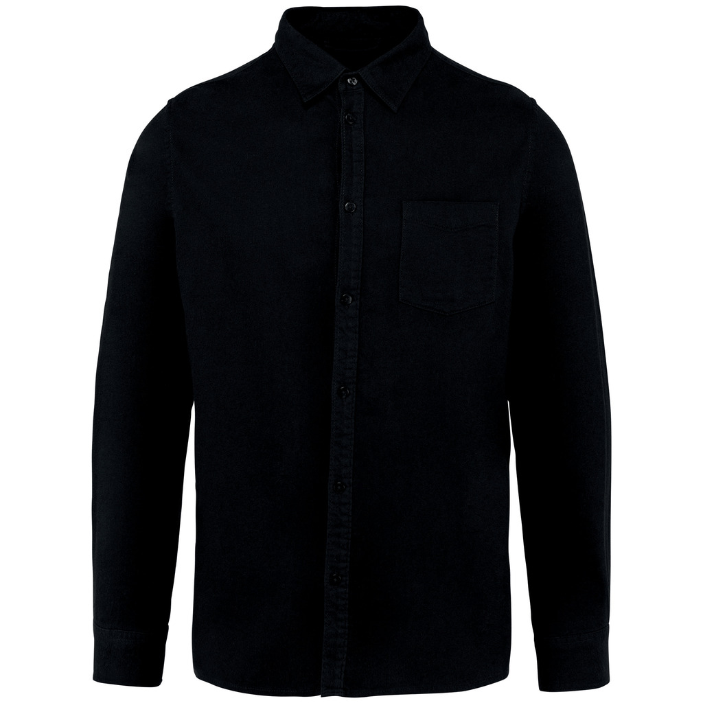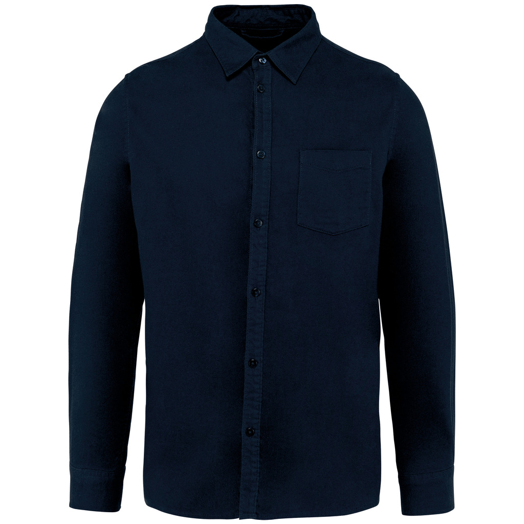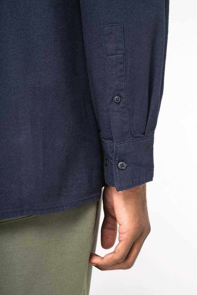 100% algodão biológico. Algodão Twill. Corte regular ligeiramente cintado. Tecido escovado no exterior. Botões em plástico reciclado tom sobre tom. Colarinho com suporte. Bolso plano peito esquerdo. Punhos com botões. Pinças nas costas. Carcela nos punhos com botões.