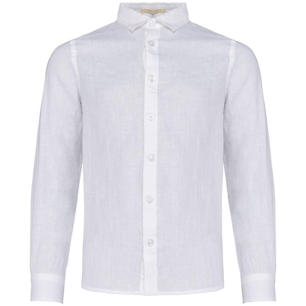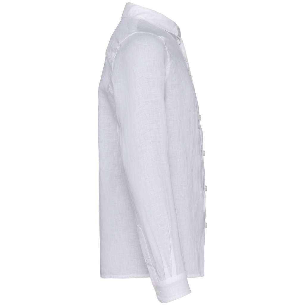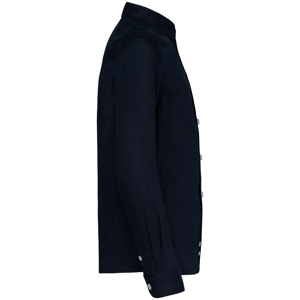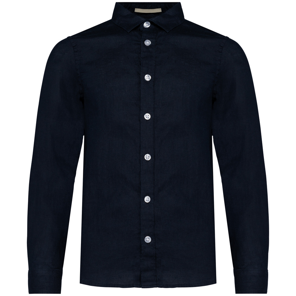100% linho. Tecida. Corte justo. Costuras laterais. Carcela com botões com efeito nacarado em plástico reciclado. Banda interior no colarinho em chevron. Encaixe nas costas. Carcela nos punhos arredondados com botões. Bainha simples na parte inferior da peça Carcela debaixo dos braços com pesponto duplo. Peça lavada após montagem, as cores podem variar de produto para produto.