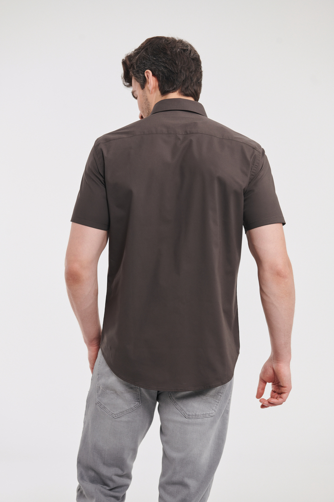 97% algodão popeline / 3% elastano. Malha extensível para maior conforto e um ajuste perfeito. Tratamento fácil. Camisa com 7 botões à cor da peça. Colarinho elegante semiaberto tipo italiano com um botão pérola.