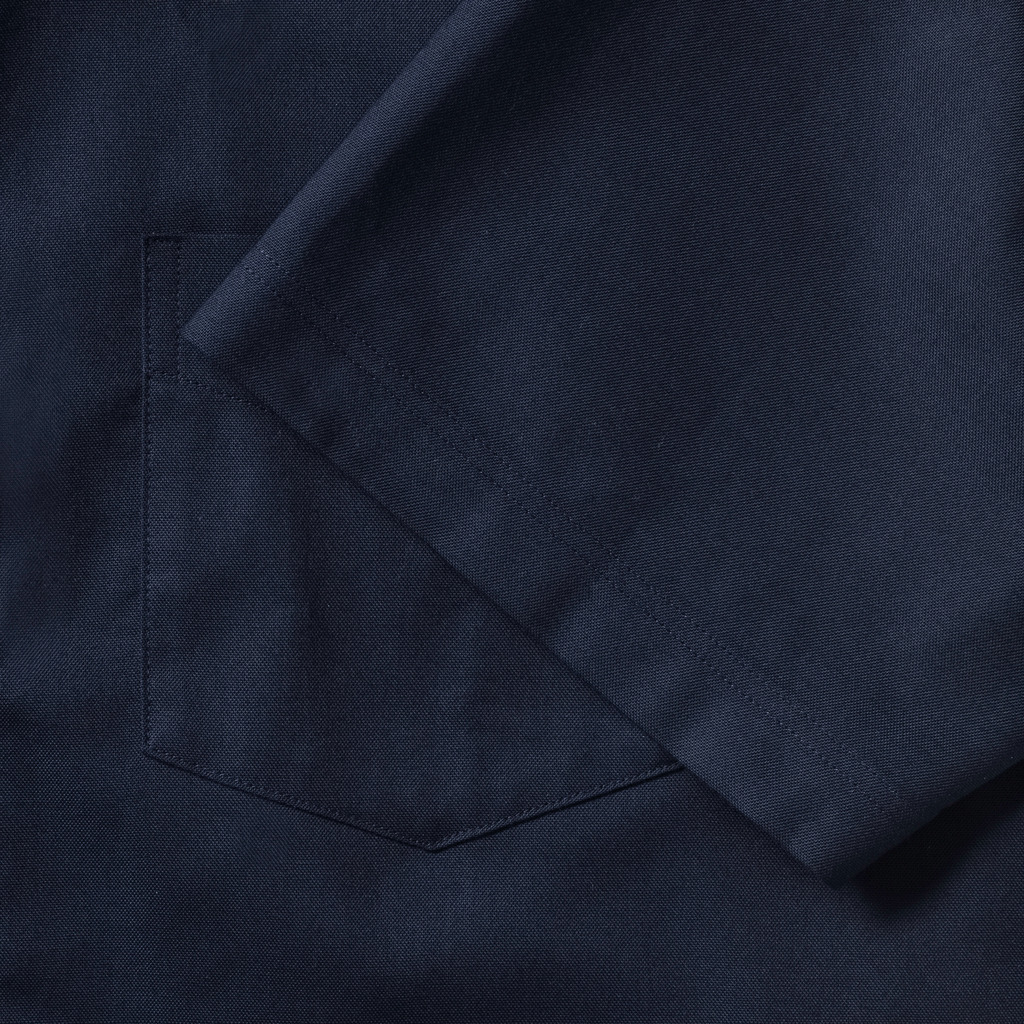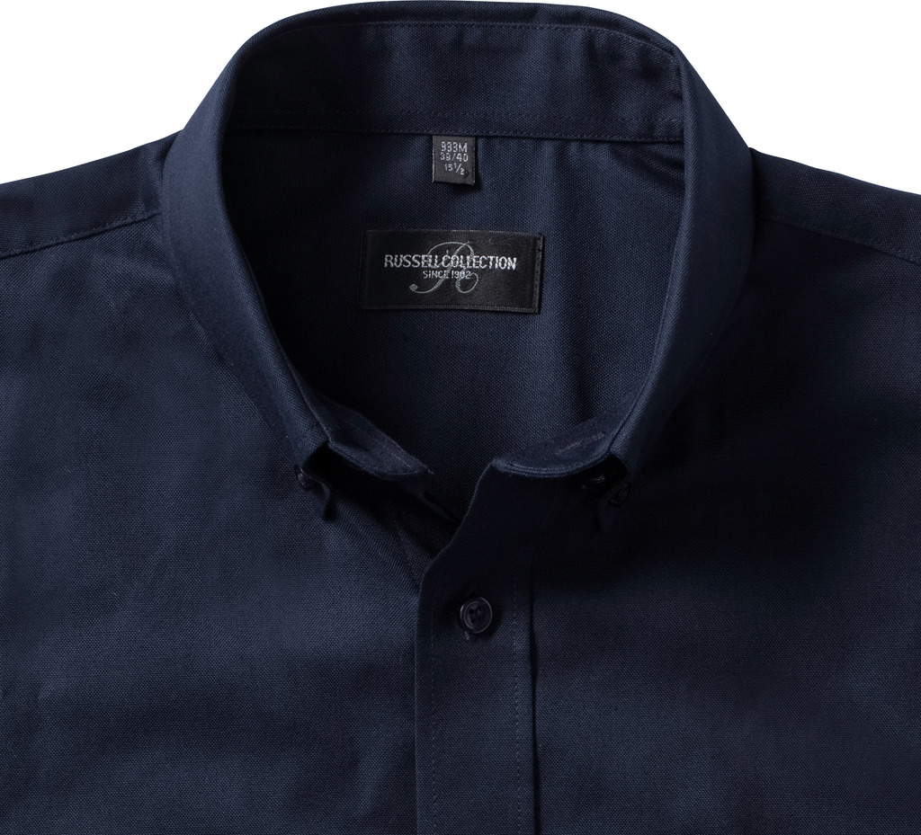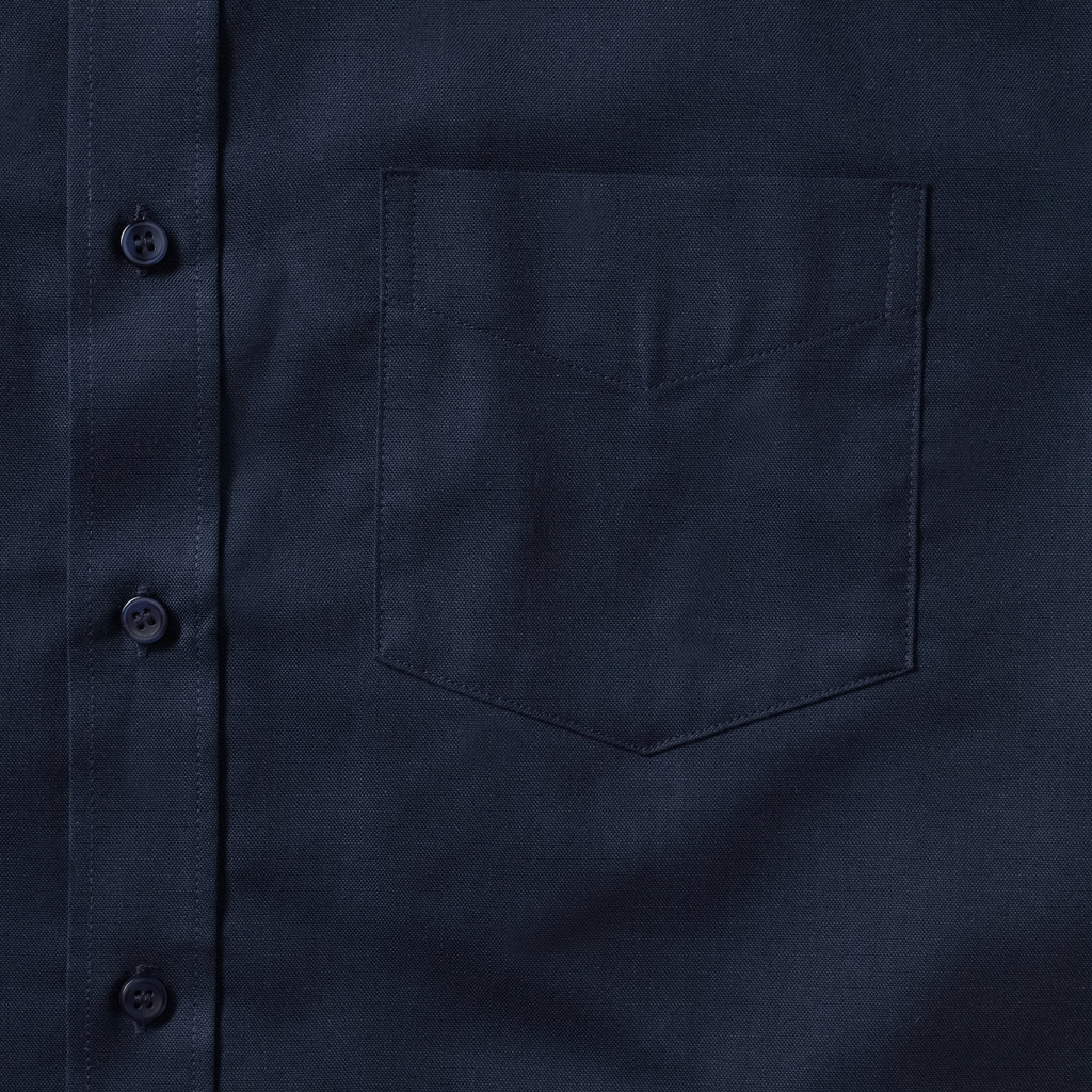 70% algodão Oxford – 30% poliéster. Tratamento verdadeiramente fácil. Colarinho com botões. Detalhe nas costas com 2 dobras laterais. Bolso no peito esquerdo.
