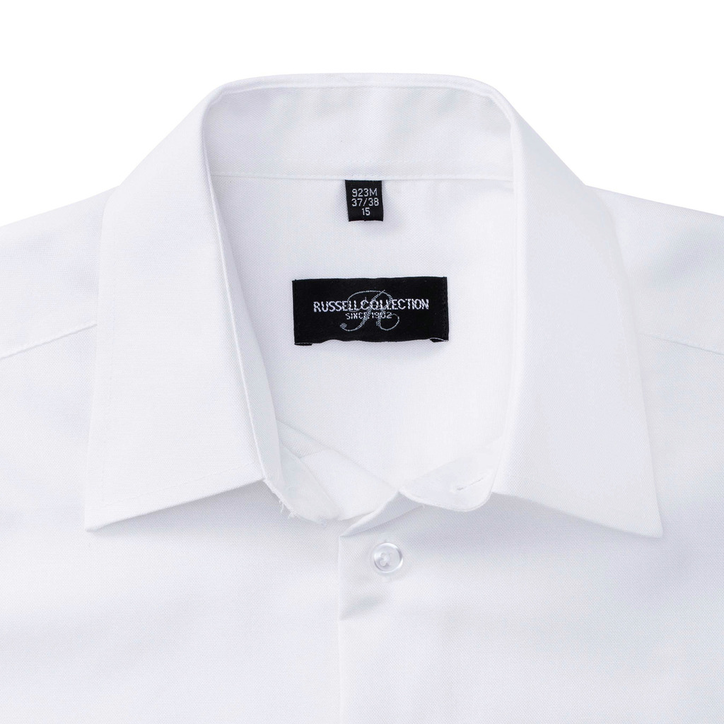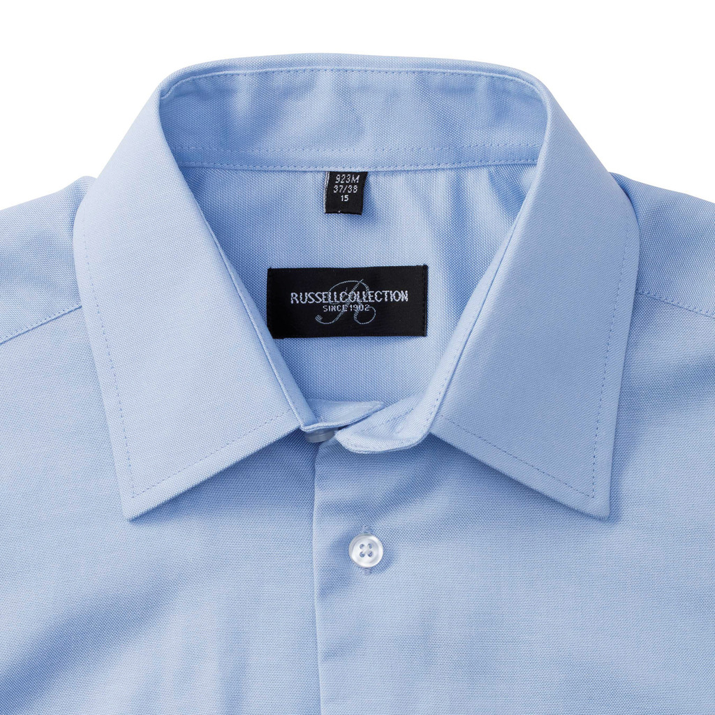 70% algodão Oxford/30% poliéster. Corte cintado. Colarinho Kent com pontas reforçadas. Tratamento fácil.