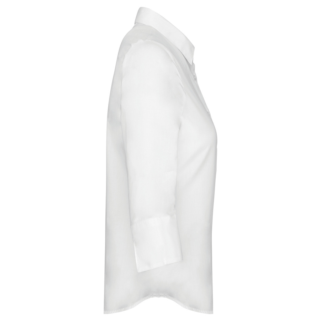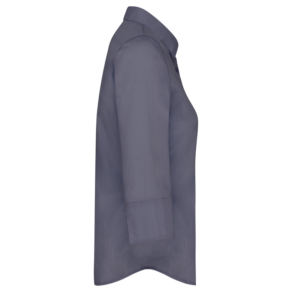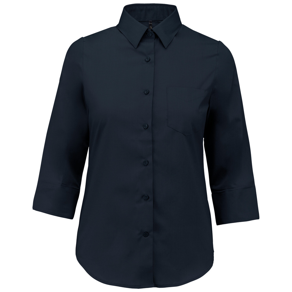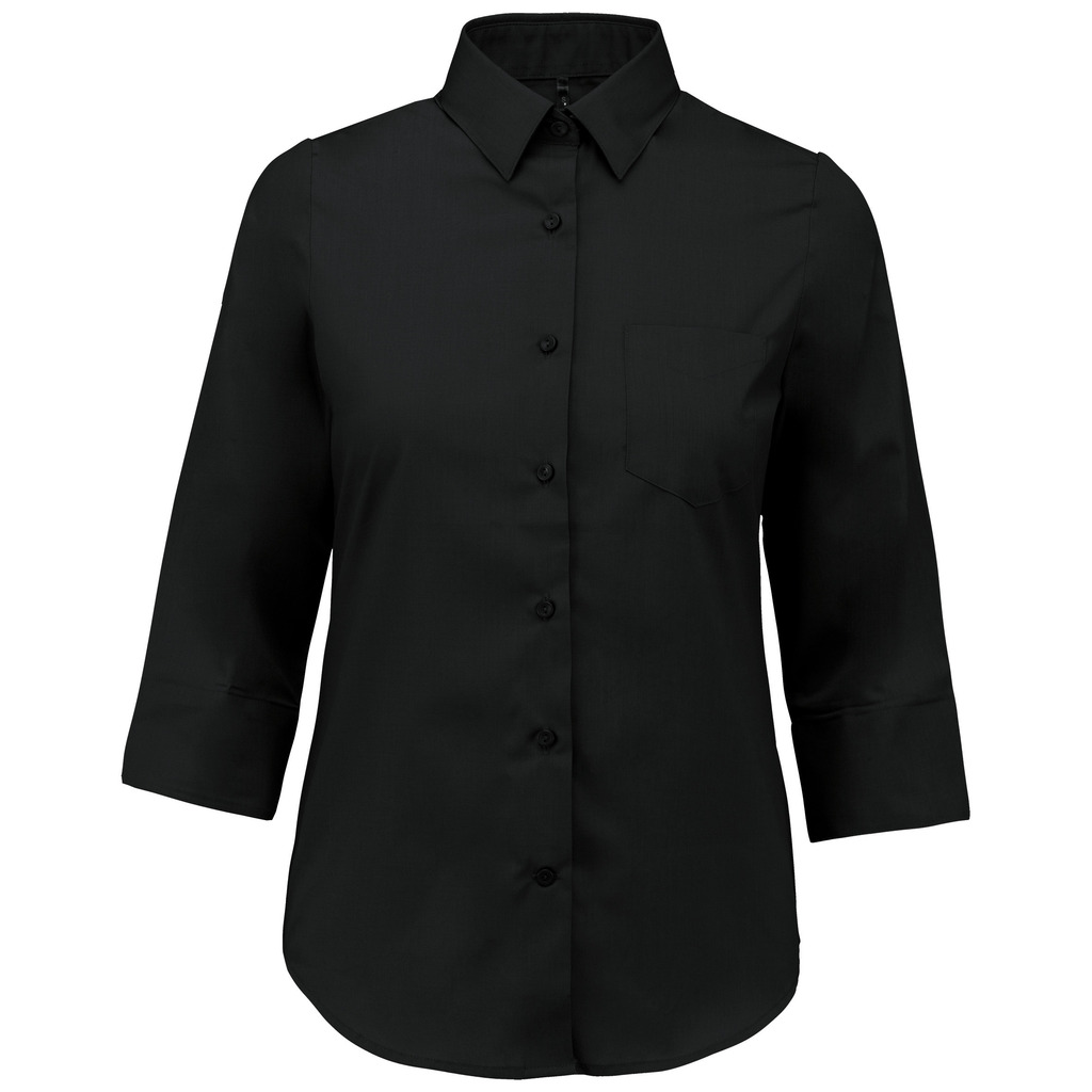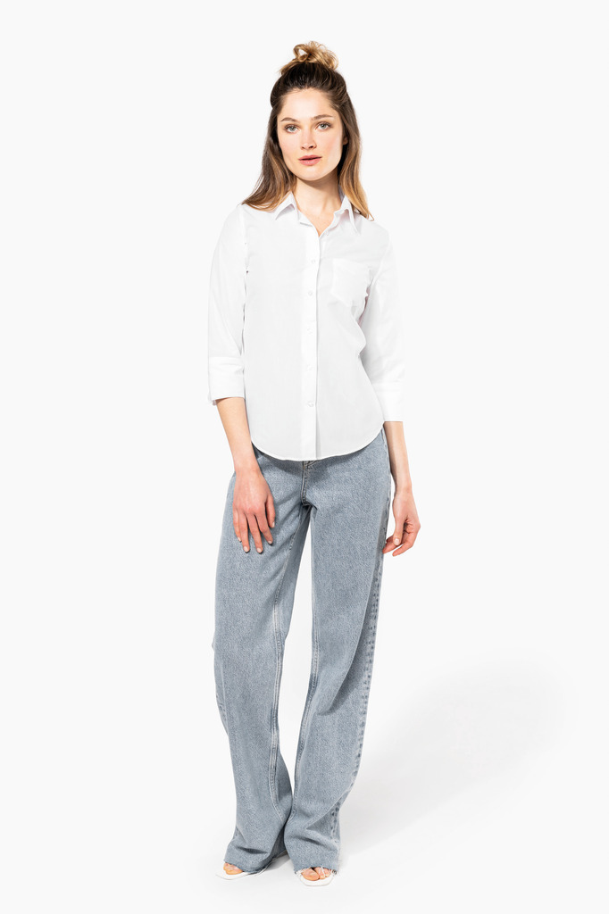 65% poliéster / 35% algodão popeline. Tratamento fácil. Sem botões no colarinho. Botões à cor. Bolso no peito esquerdo com acabamento em V. 1 botão extra. Bainha arredondada.
