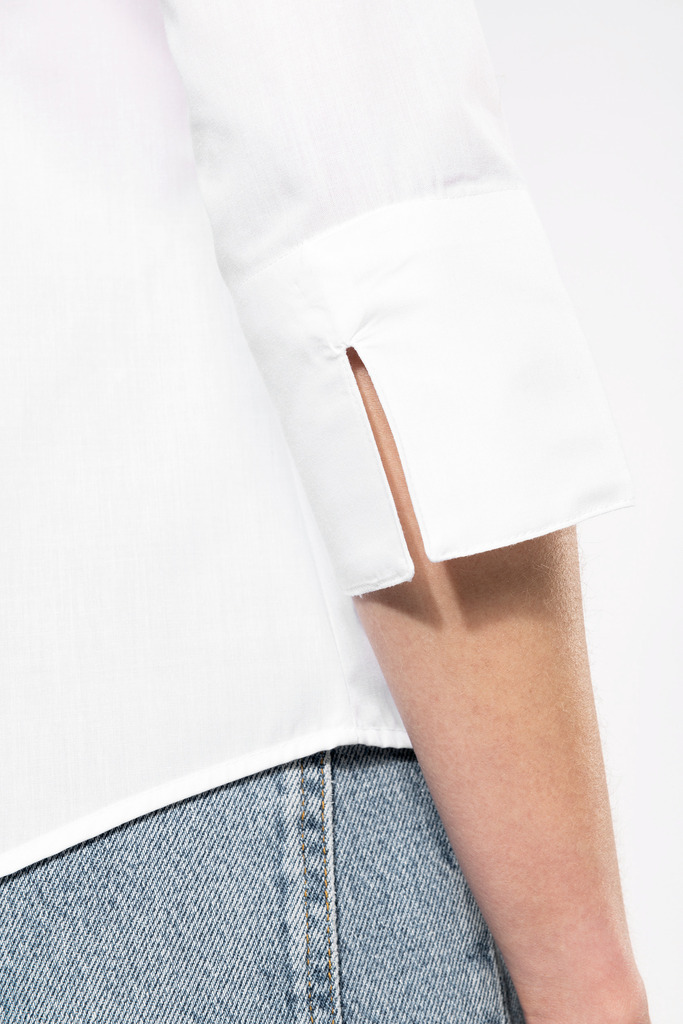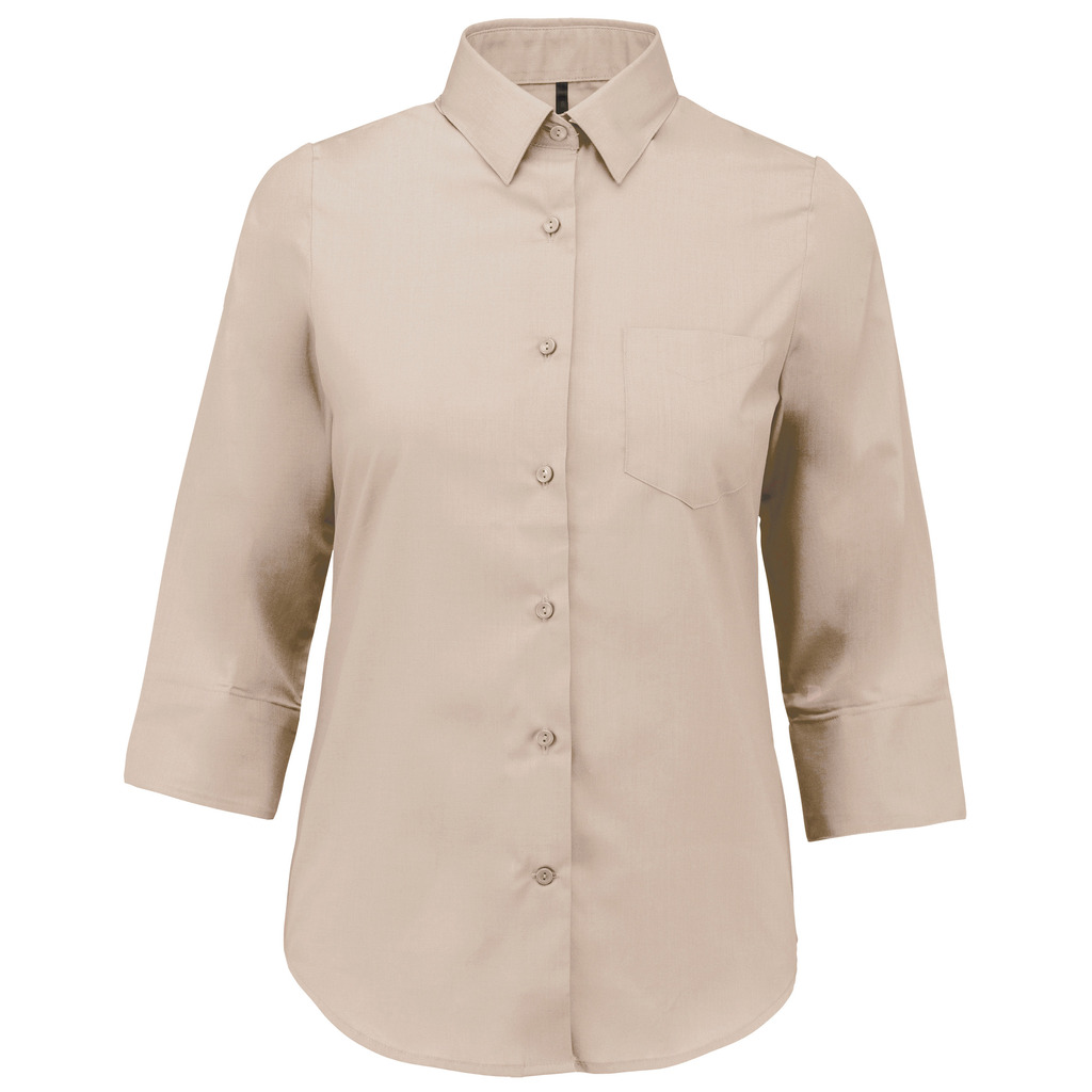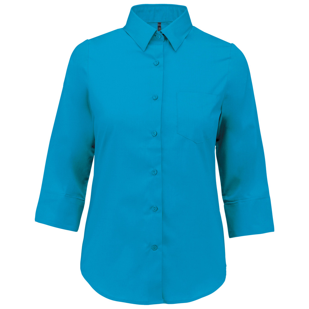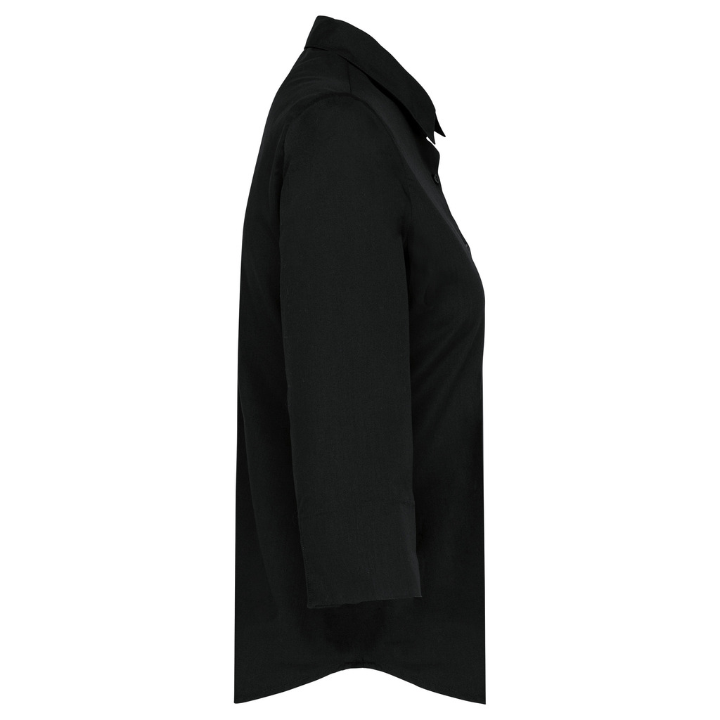 65% poliéster / 35% algodão popeline. Tratamento fácil. Sem botões no colarinho. Botões à cor. Bolso no peito esquerdo com acabamento em V. 1 botão extra. Bainha arredondada.