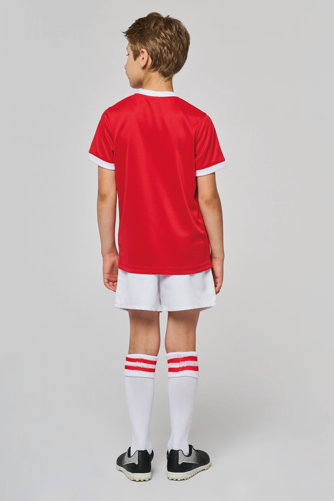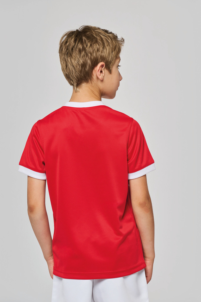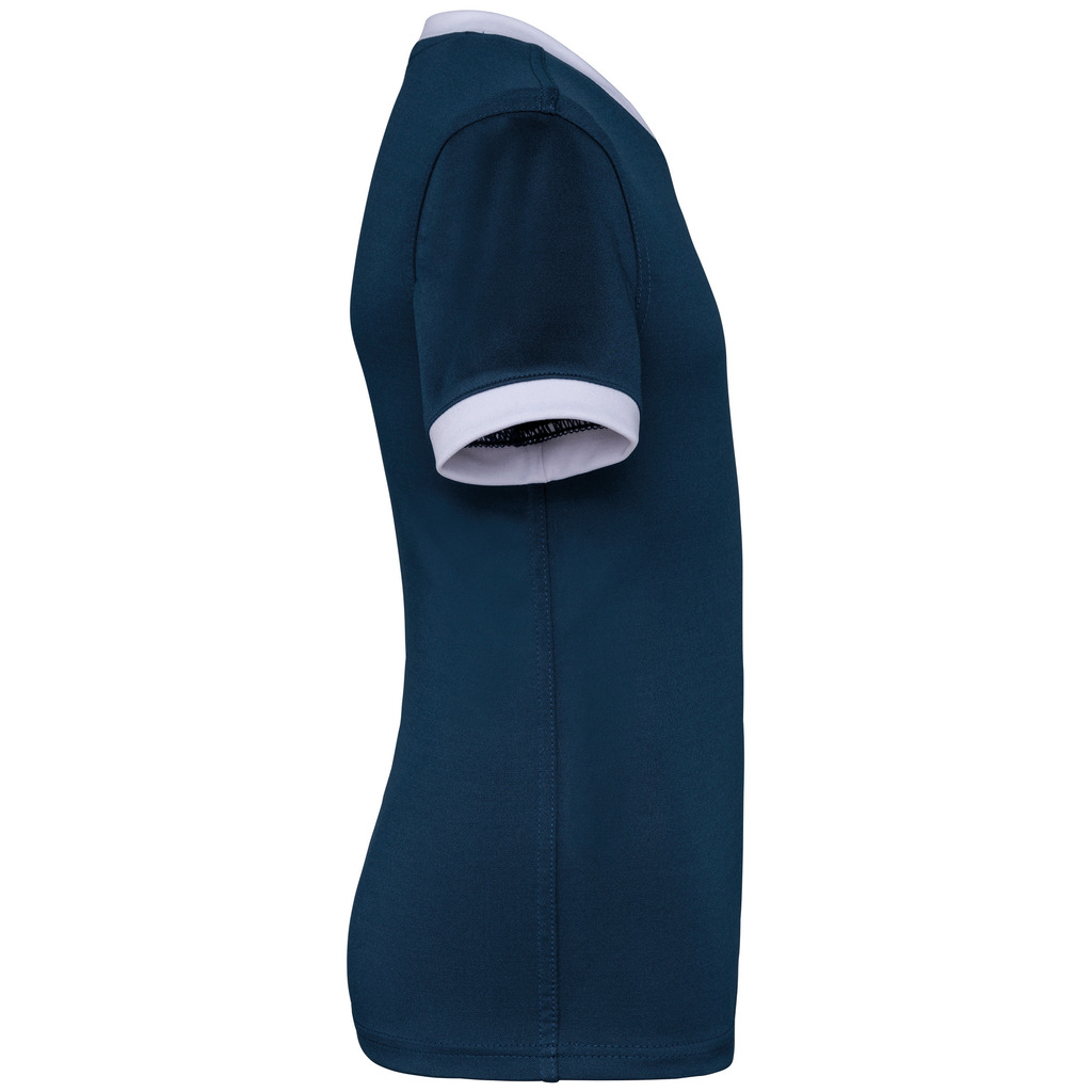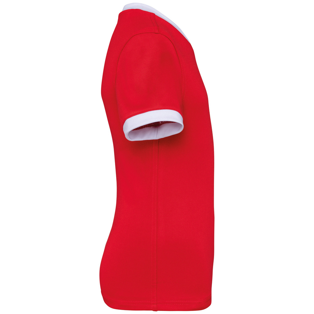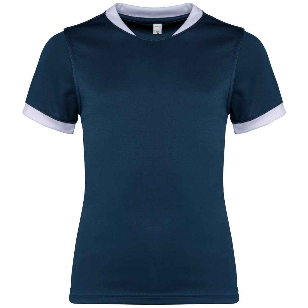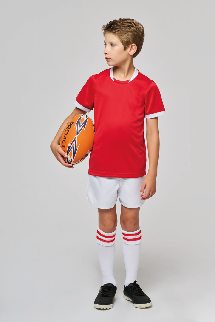 100% poliéster. Malha interlock. Corte direito. Corte e cose. Decote redondo em malha rib 1 x 1 em contraste Blanc para todas as cores e encaixe em interlock tom sobre tom. Acabamento da manga em malha rib 1 x 1 em contraste Blanc para todas as cores. Tapa-costuras em interlock tom sobre tom. Costuras reforçadas com costura dupla nas cavas, nos ombros e nas laterais da peça. Acabamento costura dupla na bainha. Etiqueta de marca amovÃvel.