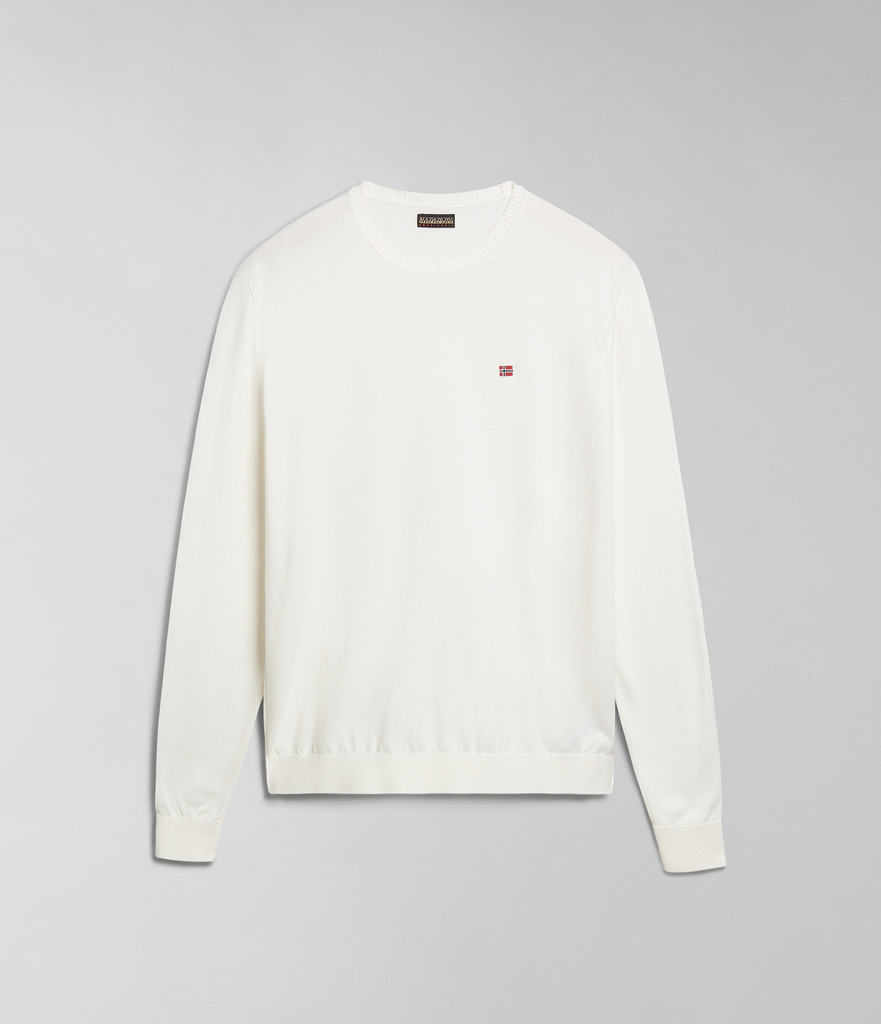 100% algodão. Camisola decote redondo com manga comprida com acabamentos canelados e detalhes bordados. Corte clássico.