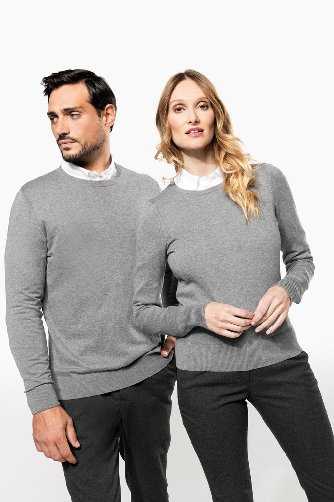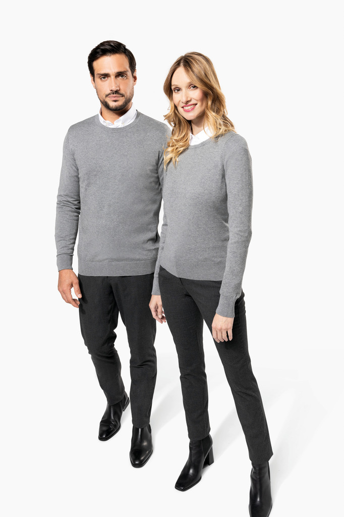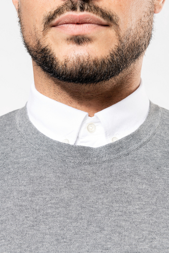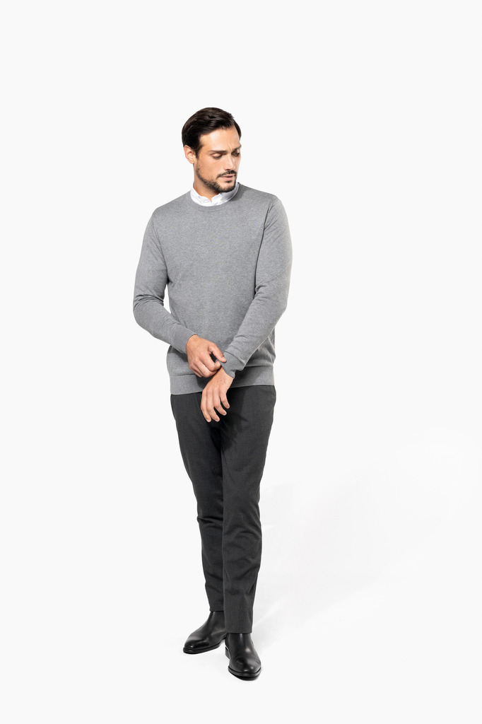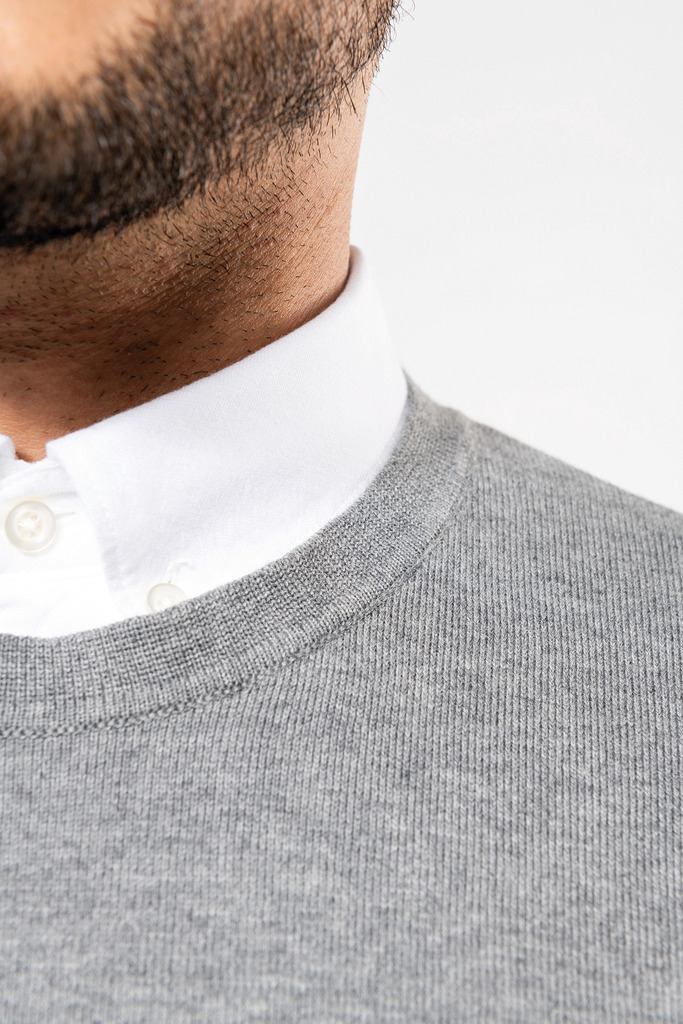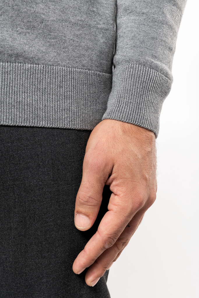 100% algodão Supima®. Algodão penteado. Arqueado 12. Tecido de qualidade superior. Muito fashion: tricotada na forma e montada na máquina das malhas. Decote, punhos e bainha em malha rib 1 x 1.