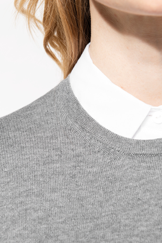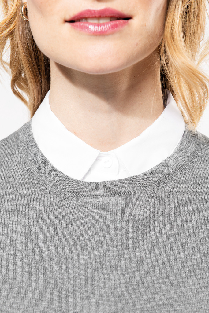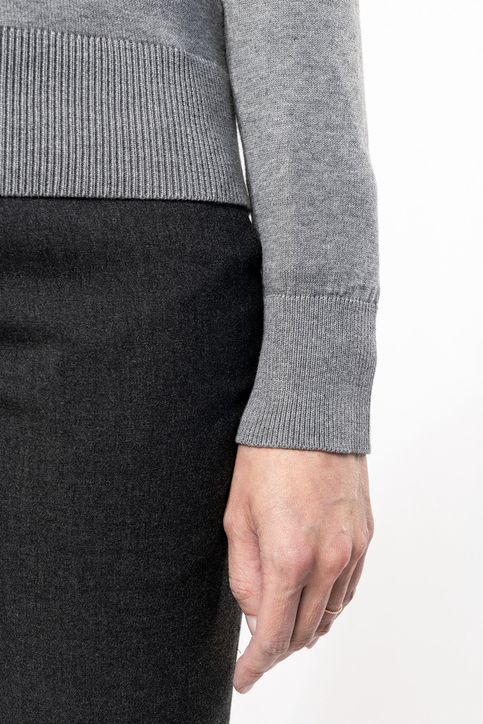 100% algodão Supima®. Algodão penteado. Arqueado 12. Tecido de qualidade superior. Muito fashion: tricotada na forma e montada na máquina das malhas. Decote, punhos e bainha em malha rib 1 x 1.