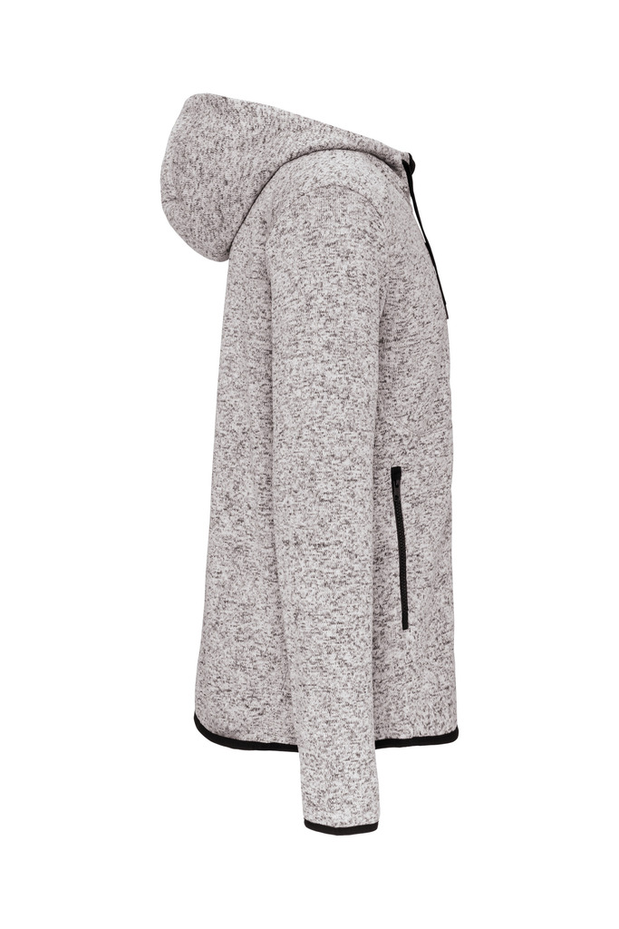 Malha interior cardado 100% poliéster. 2 bolsos frontais com fecho em contraste e 1 bolso no peito com fecho em contraste. Capuz com forro em contraste em malha jersey 100% algodão com cordão de ajuste plano em contraste. Acabamento das mangas e do cós com recobrimento elástico em contraste. Acabamentos e detalhes fashion.