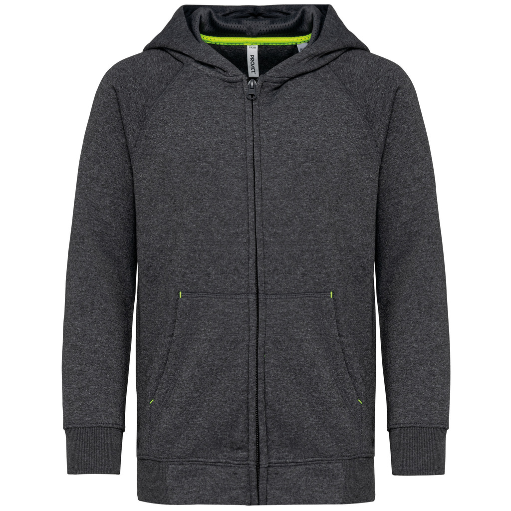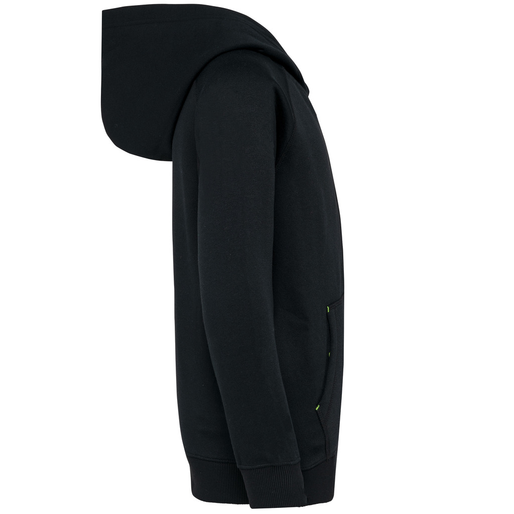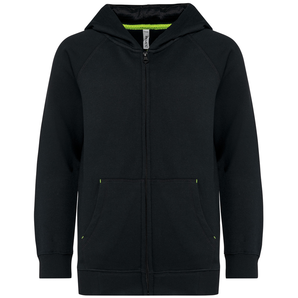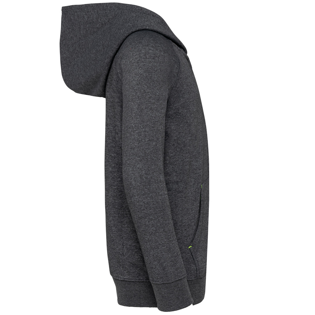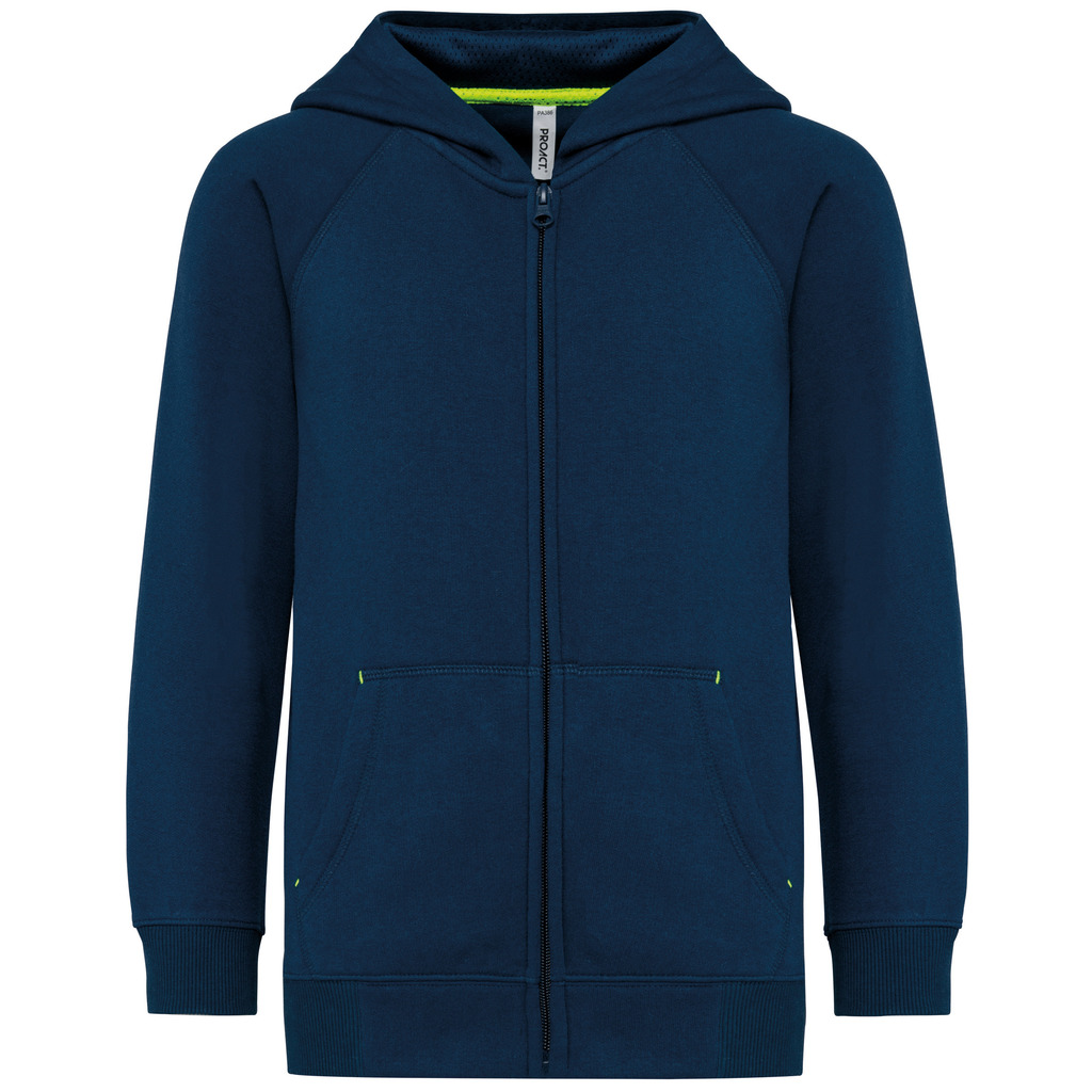 65% poliéster/35% algodão. Interior cardado. Algodão penteado. Fio Vortex. Corte justo. Mangas raglan. Fecho em nylon. Capuz forrado com malha em rede tom sobre tom. Tapa-costuras no interior do capuz e pontos de reforço nos bolsos em cores fluorescentes. Bolsos à canguru com 1 bolso fluorescente para telefone. Punhos e cós em malha rib 2 x 2. Acabamento em meia-lua no interior da gola nas costas para facilitar a personalização. Etiqueta da marca Tear-away.