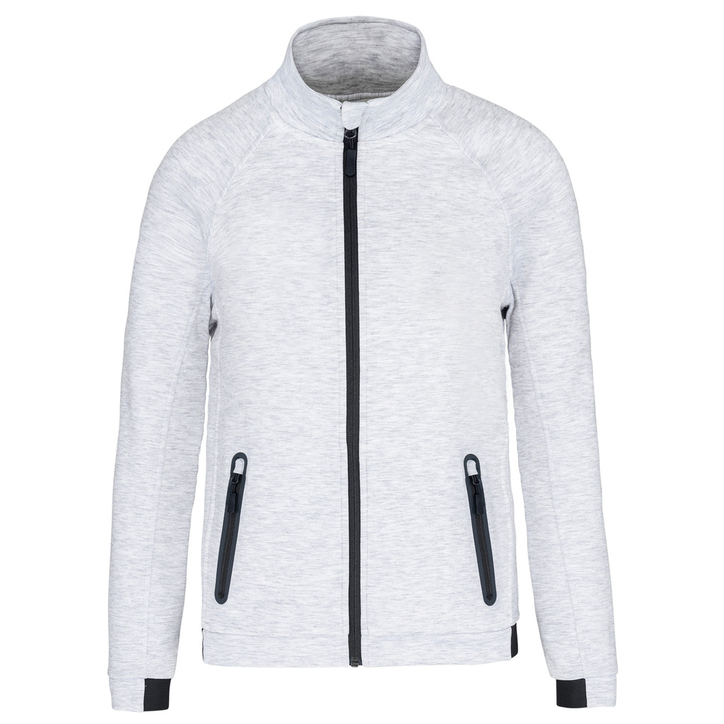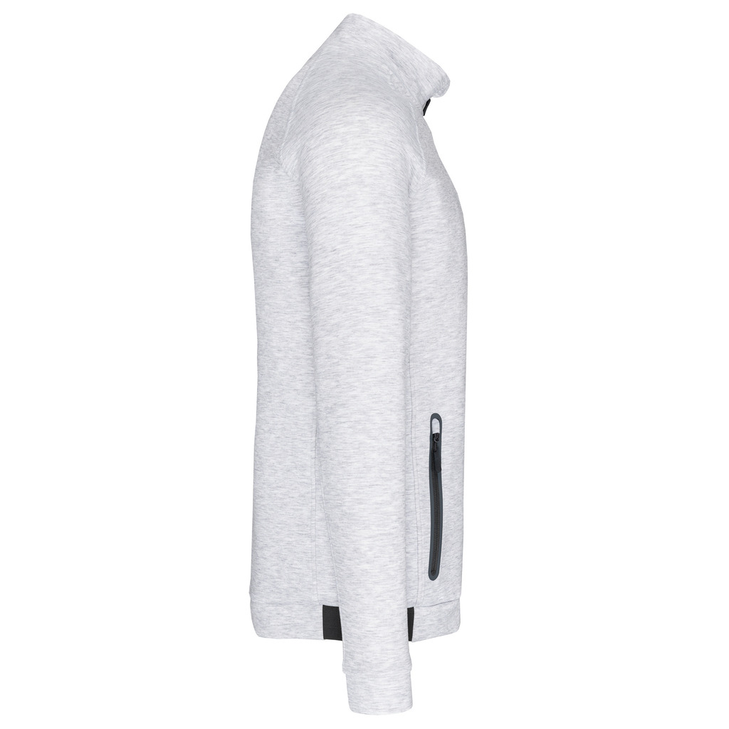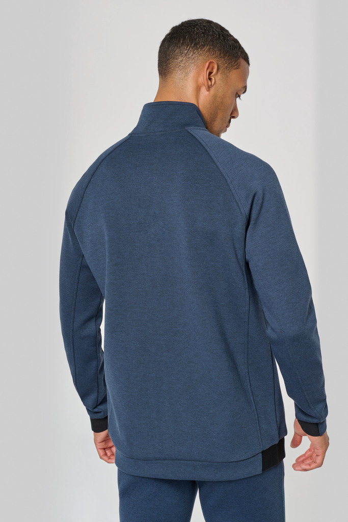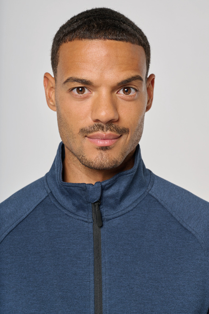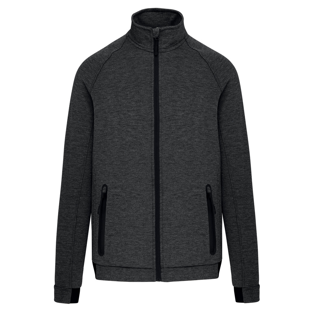 94% poliéster/6% elastano (79% poliéster/15% viscose/6% elastano para cores mescladas). Material ultraconfortável. Com fecho. 2 bolsos frontais termoculados com fecho. Acabamento da manga e da bainha ajustável com uma parte elástica Black em todas as cores e Dark Grey na Ash Heather (fechos também). Ideal para ser usado com as calças de fato de treino PA1008, estilo Urban Apparel.