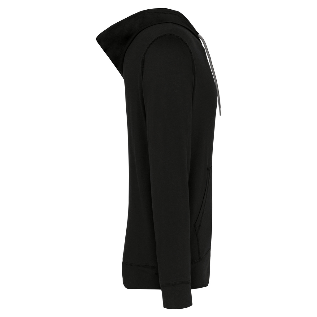 100% algodão penteado com banho de enzimas (Oxford Grey: 90% algodão / 10% viscose). Muito suave ao toque. Corte moderno e descontraÃdo. Tapa-costuras em contraste (Dark Grey para a cor Oxford Grey e Oxford Grey para as outras cores). 2 bolsos à canguru. Punhos e decote na mesma malha. Fecho e cordão de ajuste do capuz em contraste.