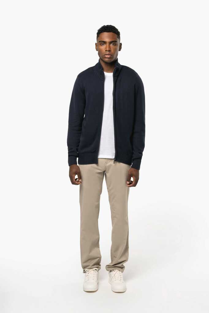 100% algodão. Gola subida. Fecho inteiro. Tapa-costuras.