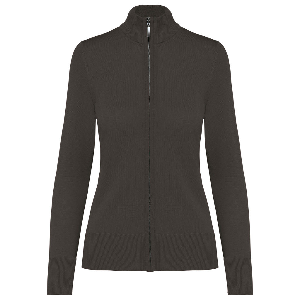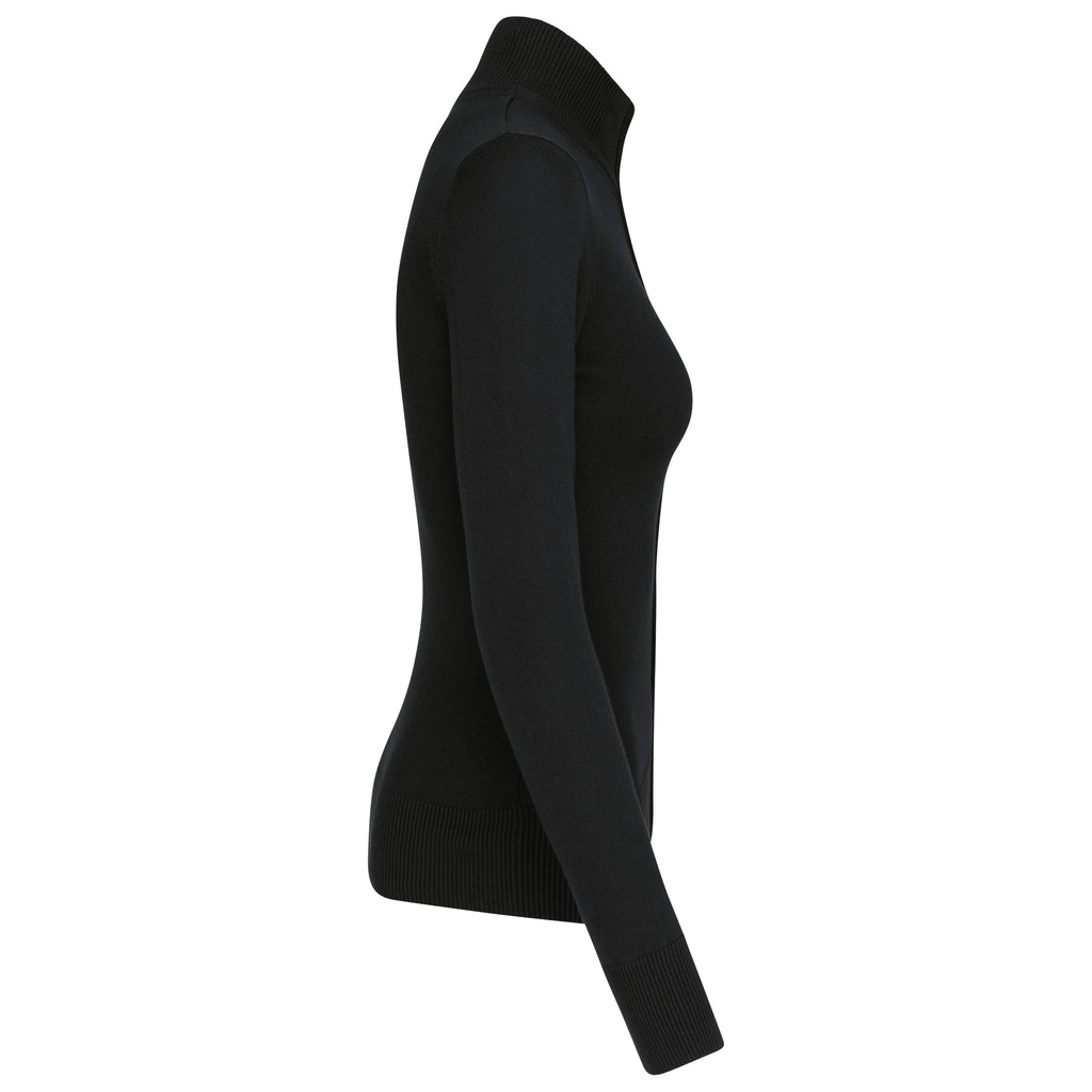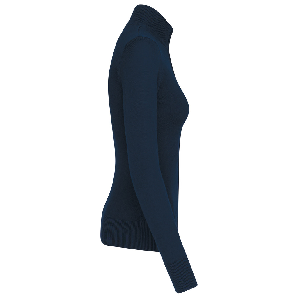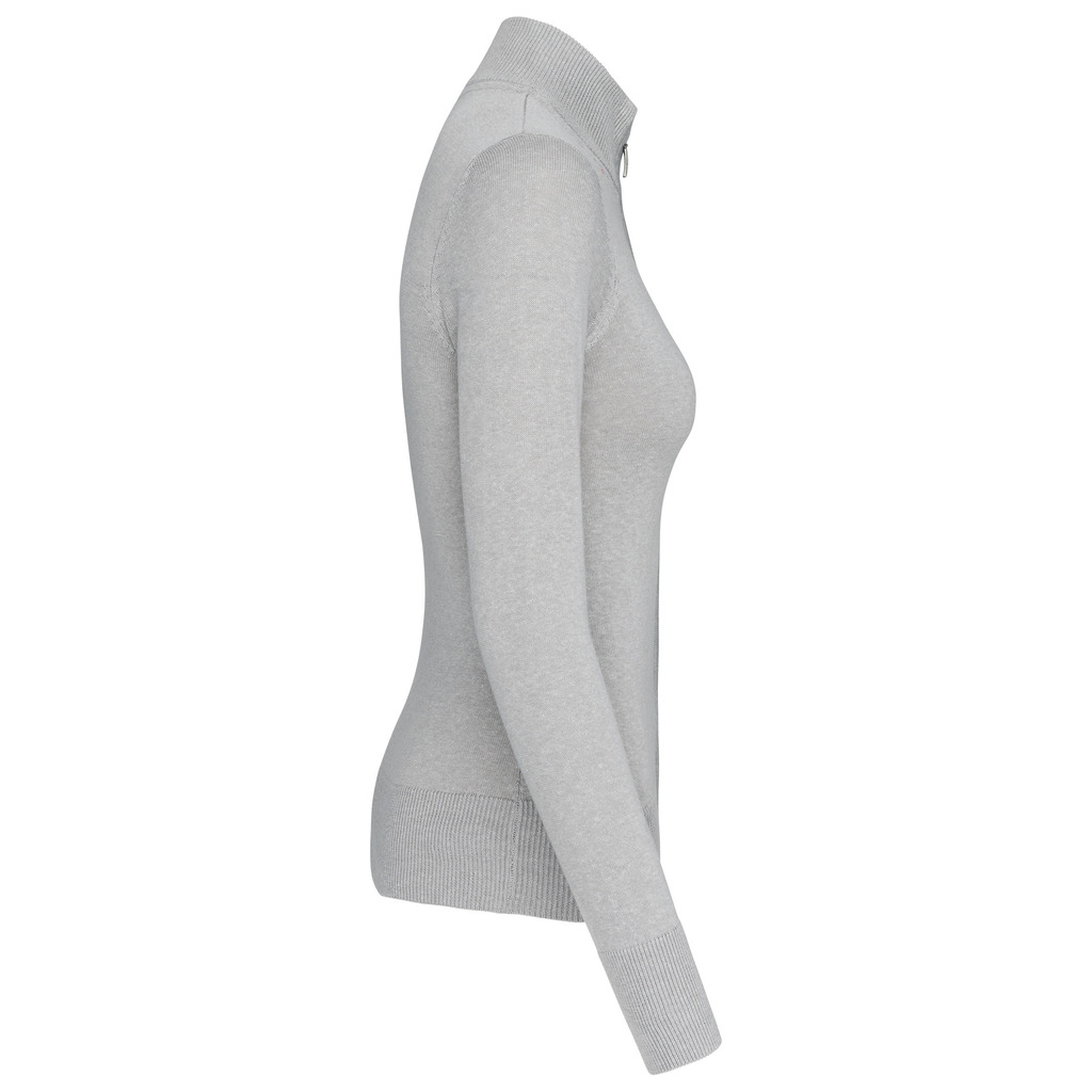 50% algodão / 50% acrilico. Corte cintado. Gola subida. Fecho frontal. Tapa-costuras.