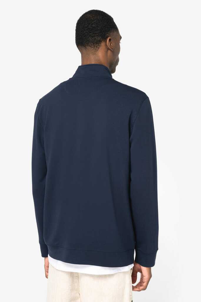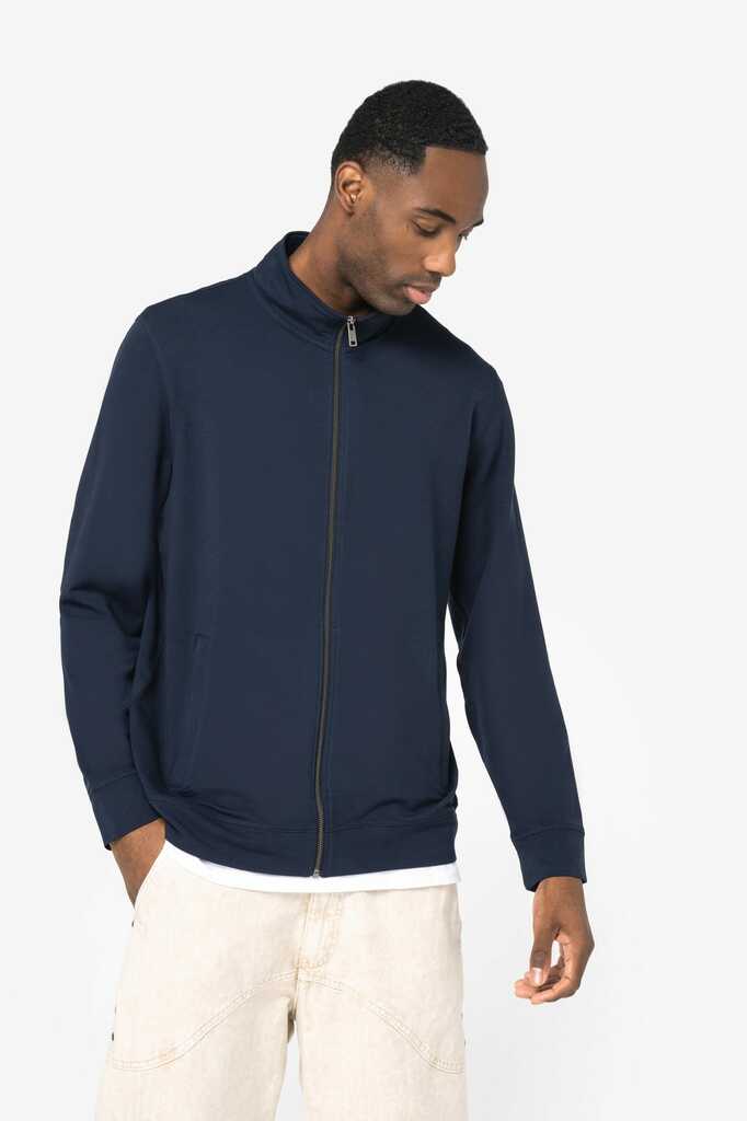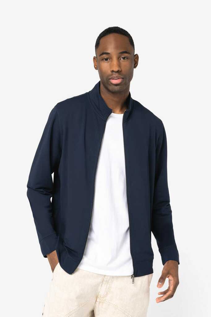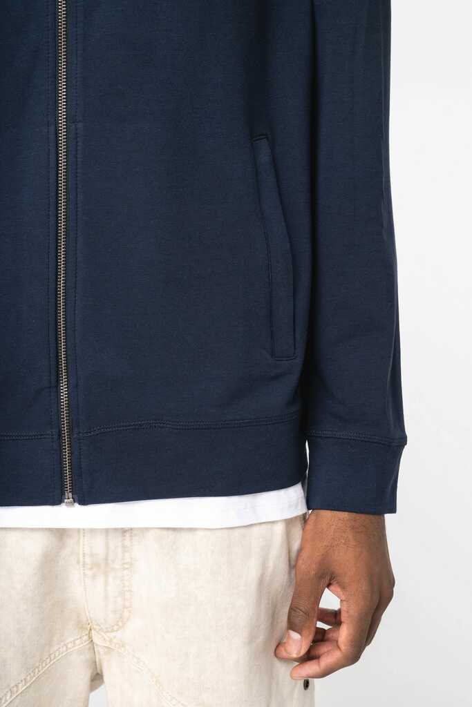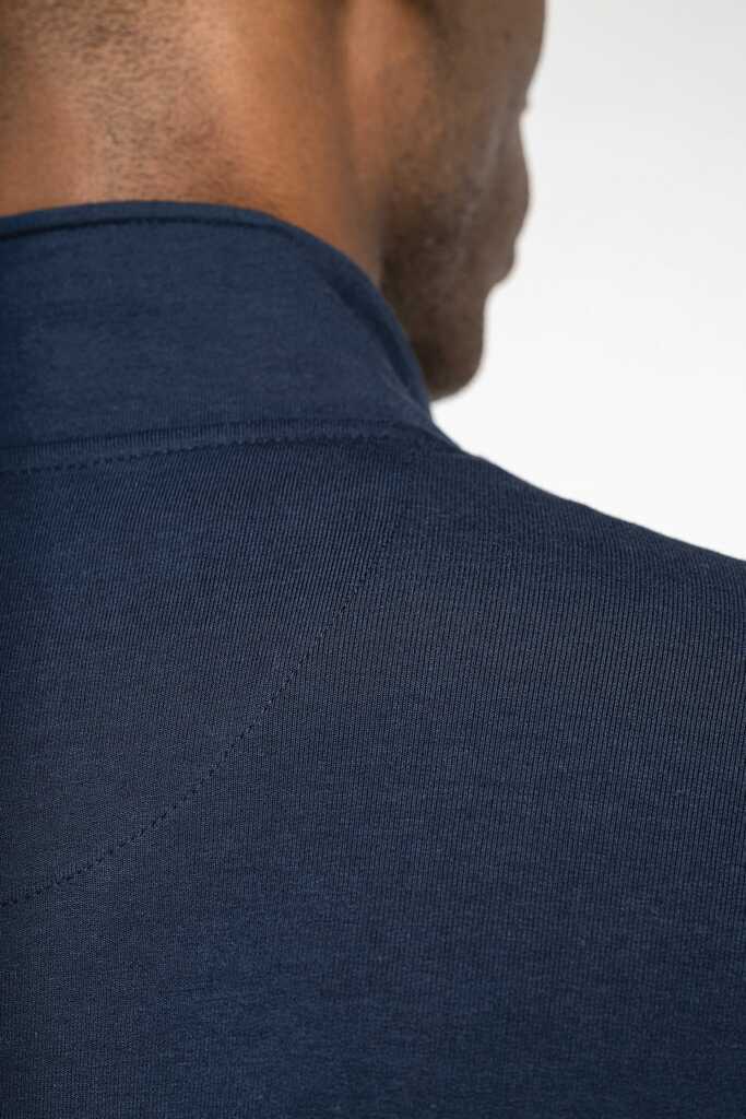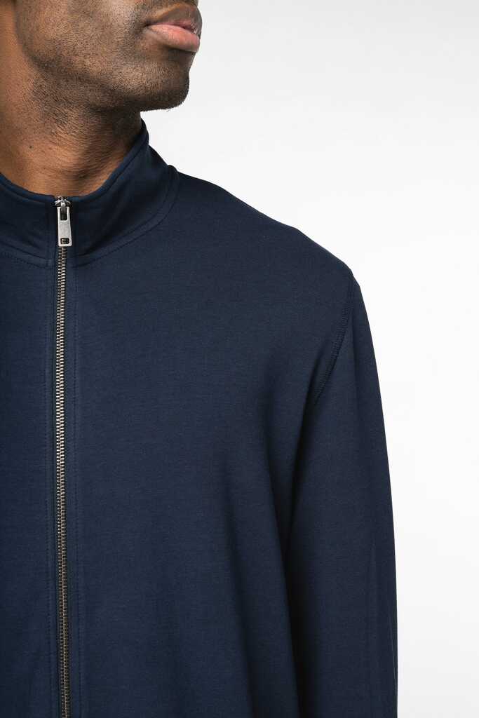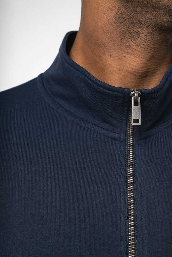 48% modal TENCEL™ / 47% algodão biológico / 5% elastano. Corte justo. Gola subida. Toque ultra-suave. Meia-lua nas costas. 2 bolsos frontais. Fecho em metal reciclado. Punhos, cós e interior dos bolsos no tecido principal. Gola com tapa-costuras no interior no material principal. Ponto de recobrimento nos punhos, nas cavas e no cós.