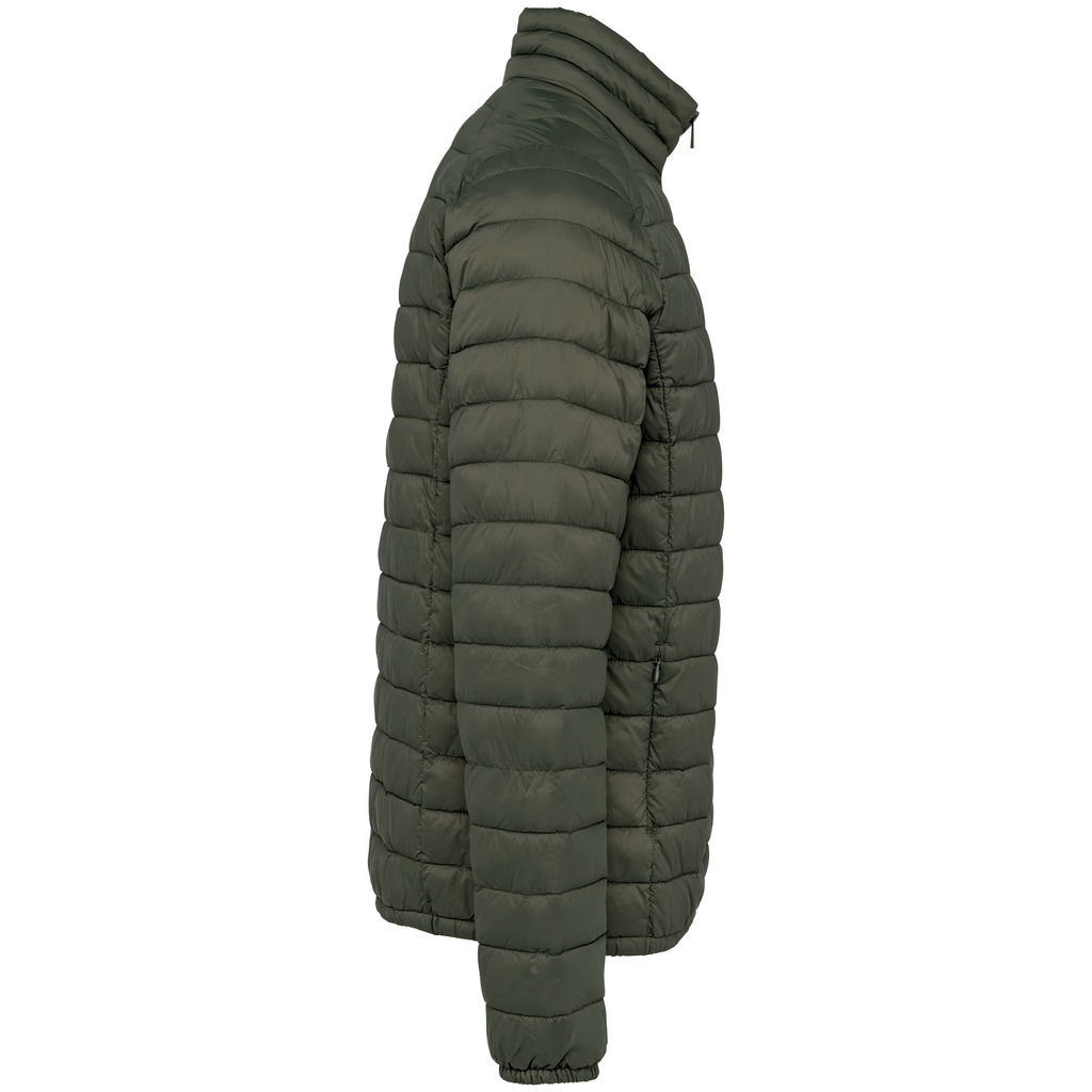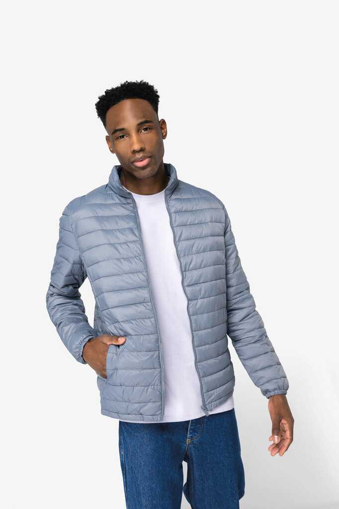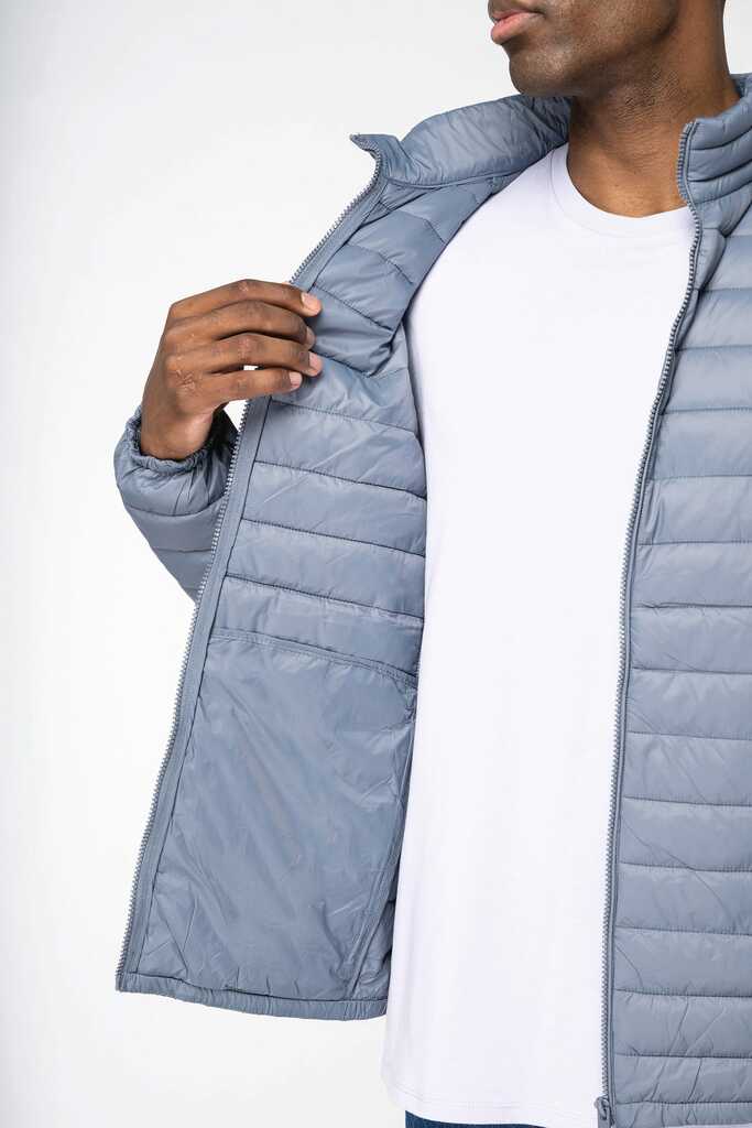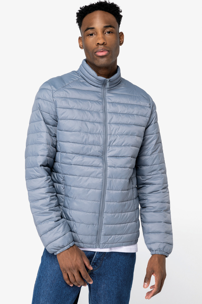 100% poliamida reciclada. Enchimento com efeito de penas em 50% Sorona® e 50% poliéster reciclado. Corte direito. Toque suave e liso. Tecido repelente à água nÃvel 4 e corta-vento 3 mm/s. Gola subida. Dois bolsos laterais com fechos invisÃveis em nylon reciclado. Dois bolsos interiores. Fecho principal em plástico reciclado tom sobre tom. Cós e punhos elásticos. Encaixes laterais e nos ombros. Entregue com saco para guardar. Largura entre os pespontos: 4,5 cm. Peso médio do tamanho L: 410g.