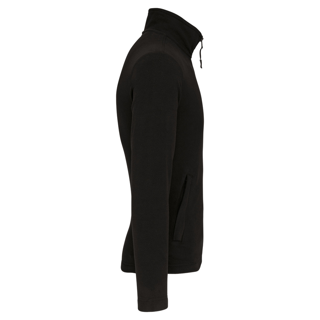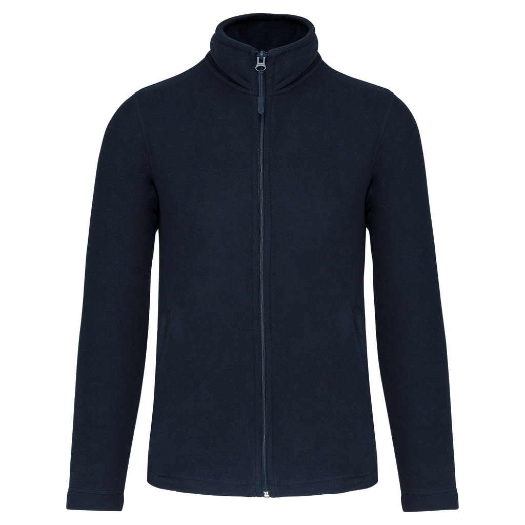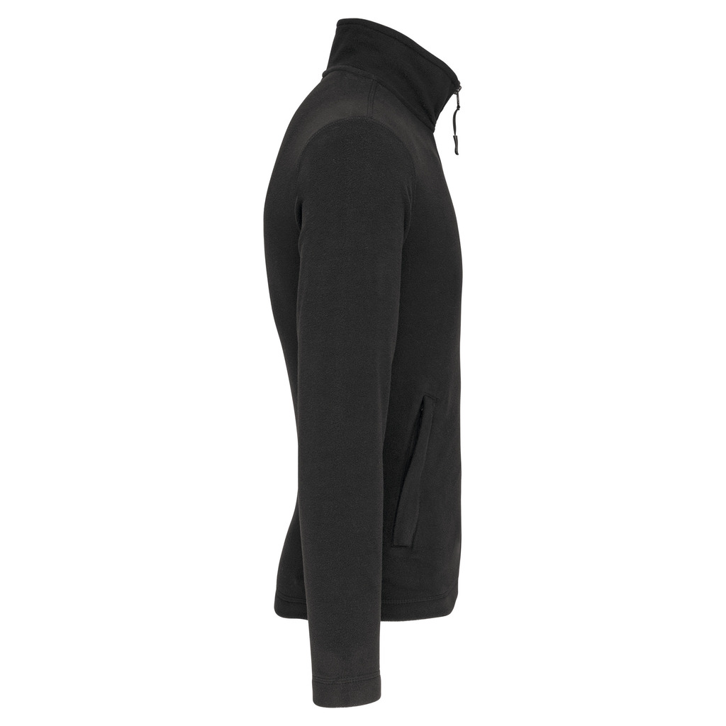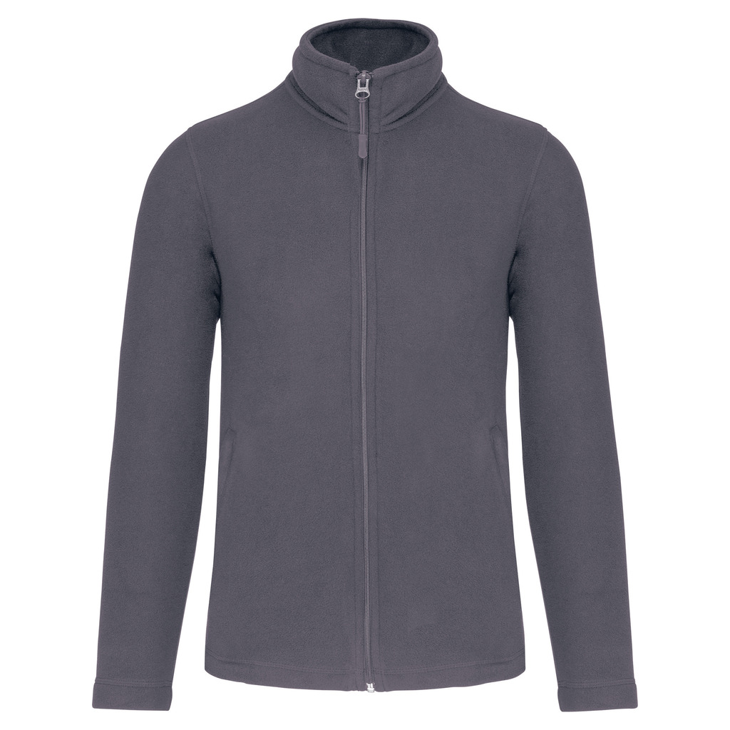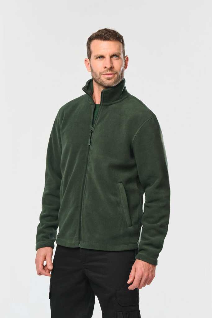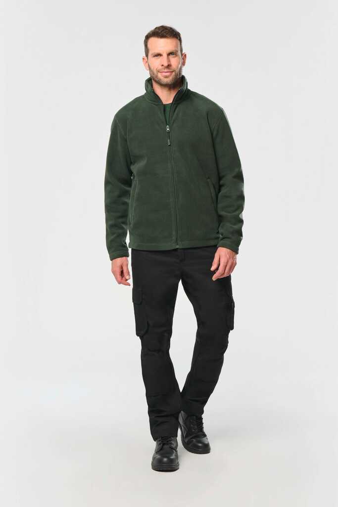 100% poliéster. Poliéster micropolar com tratamento antiborboto. 2 bolsos frontais com fecho.