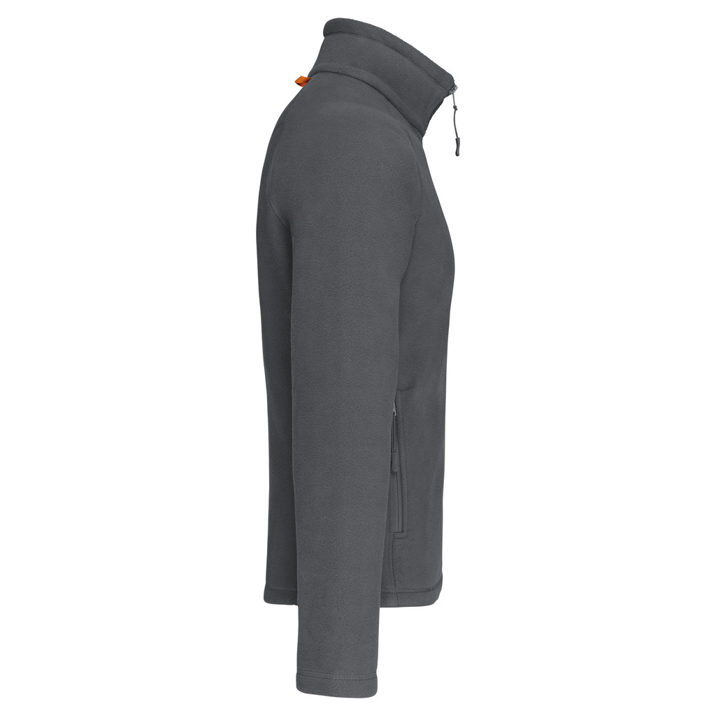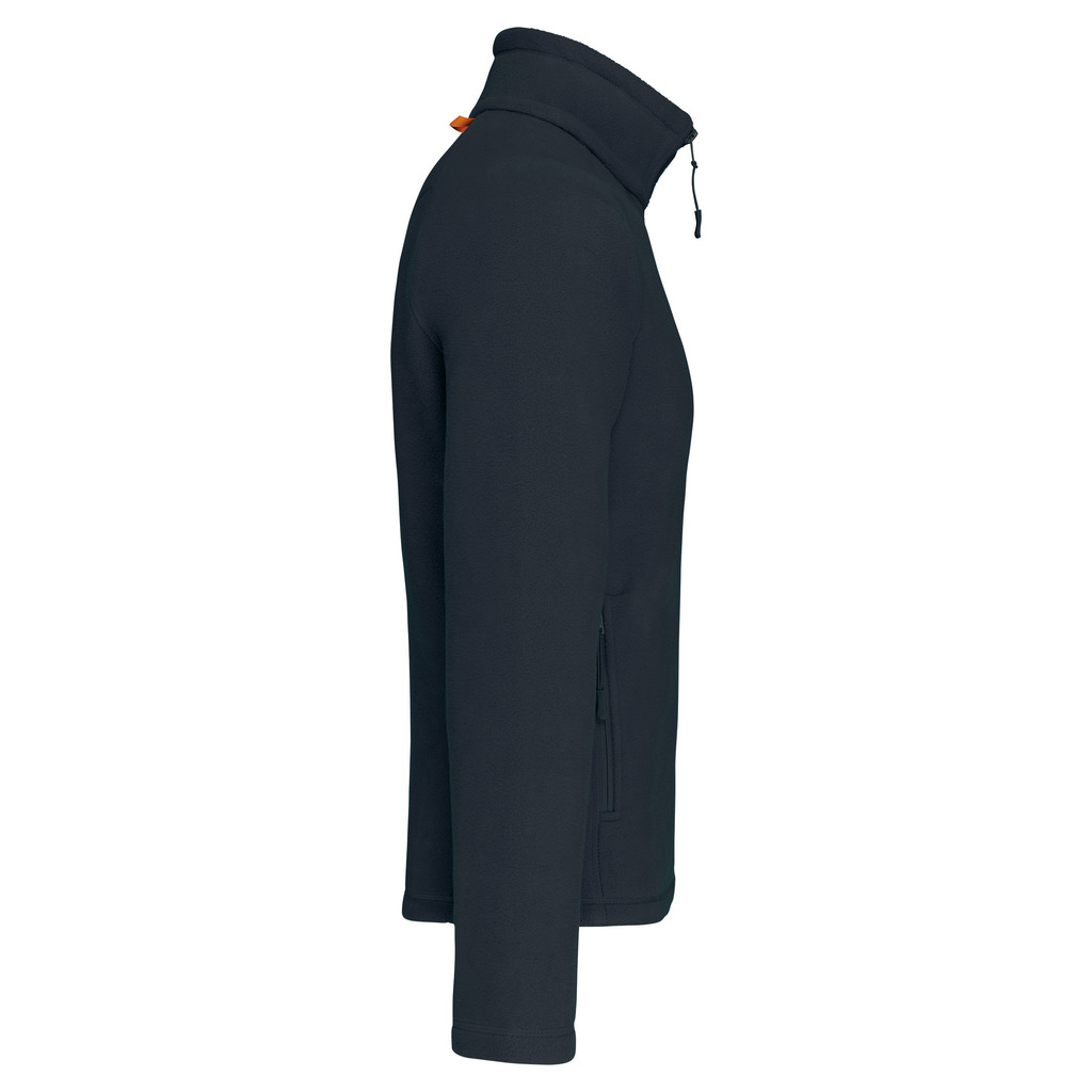 100% poliéster. Malha micropolar antiborboto. Mangas raglan. 2 bolsos frontais com fecho. 2 bolsos interiores. Cordão de ajuste elástico no cós.