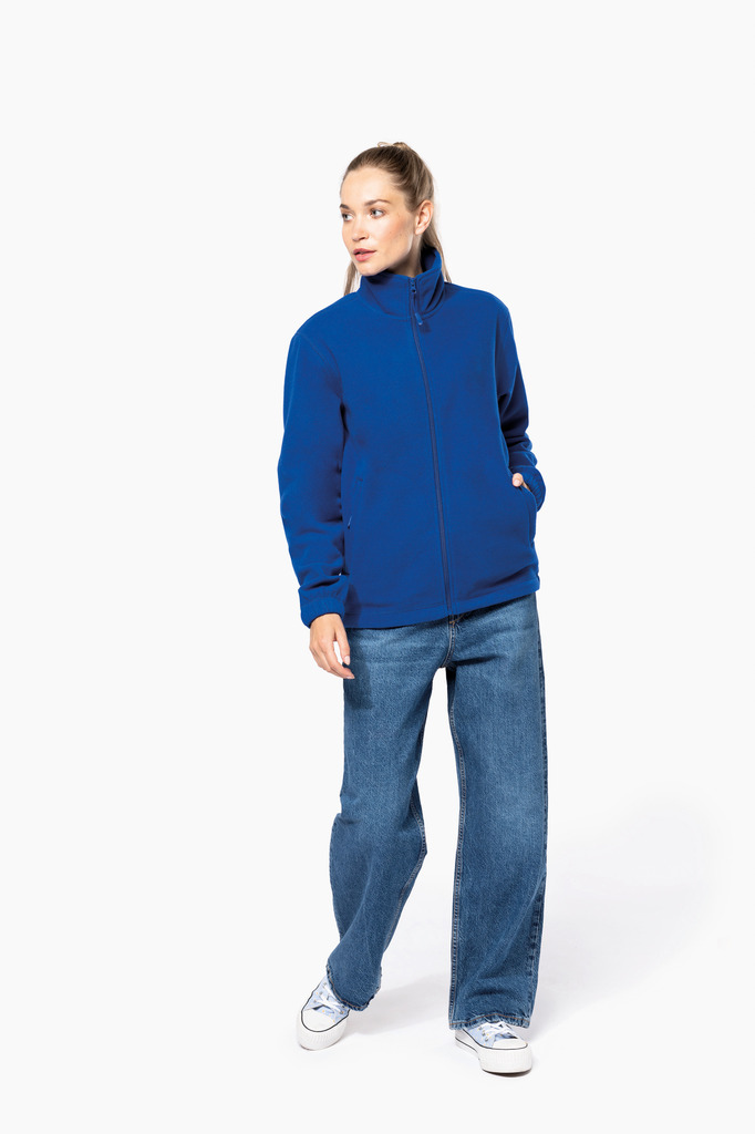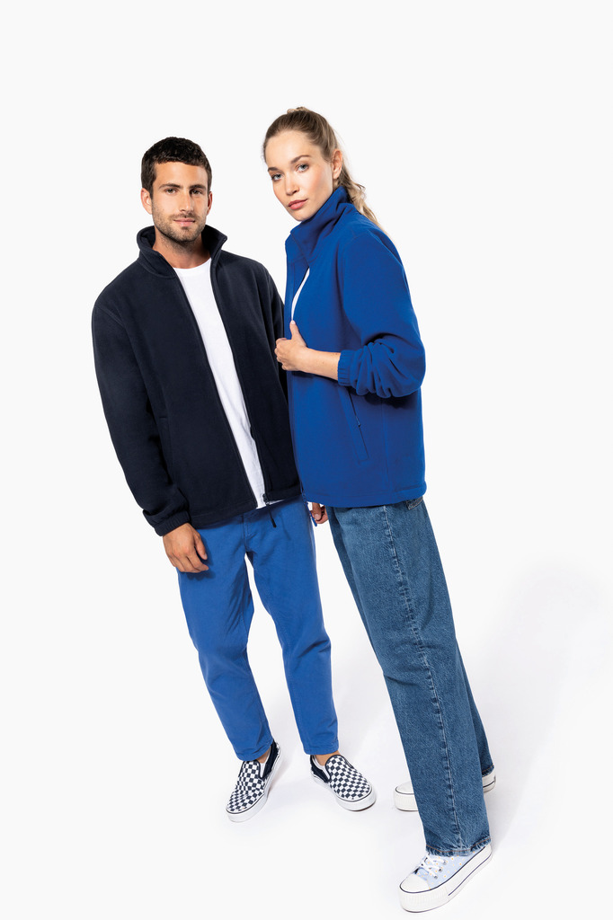 100% poliéster micropolar com tratamento antiborboto. 2 bolsos com fecho nas laterais. Com fecho. Punhos elásticos. Cós ajustável com cordão de ajuste elástico (fixação do elástico no interior para o tornar invisÃvel).