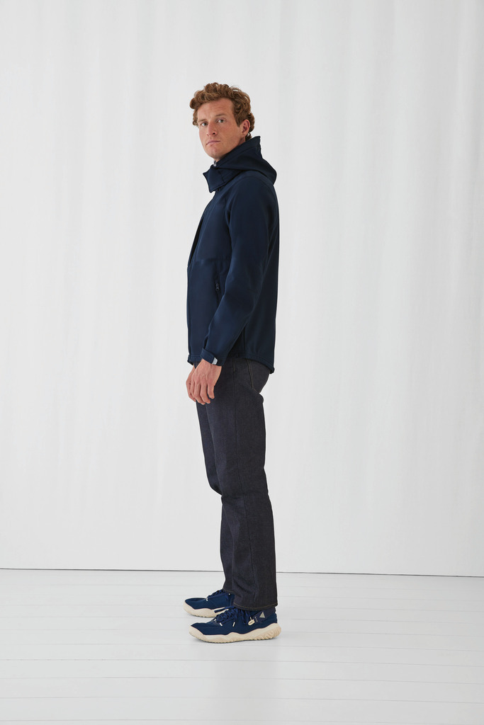 94% poliéster, 6% elastano. Impermeável a 5000 mm e respirável 1000 g/m2/24h. Exterior: Tecido de softshell. Membrana: cobertura arejada microperfurada. Interior: micropolar antiborboto em poliéster, forro em malha. 100% poliéster em rede. Capuz passa-montanhas amovÃvel com cordões ajustáveis e stoppers. Fecho a todo o comprimento com protecção para o queixo. Carcela interior no tecido de base. 2 bolsos frontais com fecho. Mangas direitas. Fechos invertidos. Punhos com carcela de fecho com Velcro®. Cursor em plástico com relevo. Corte não ajustável com cordões elásticos no fundo das costas e 2 stoppers. Espaço livre da costura nas costas.