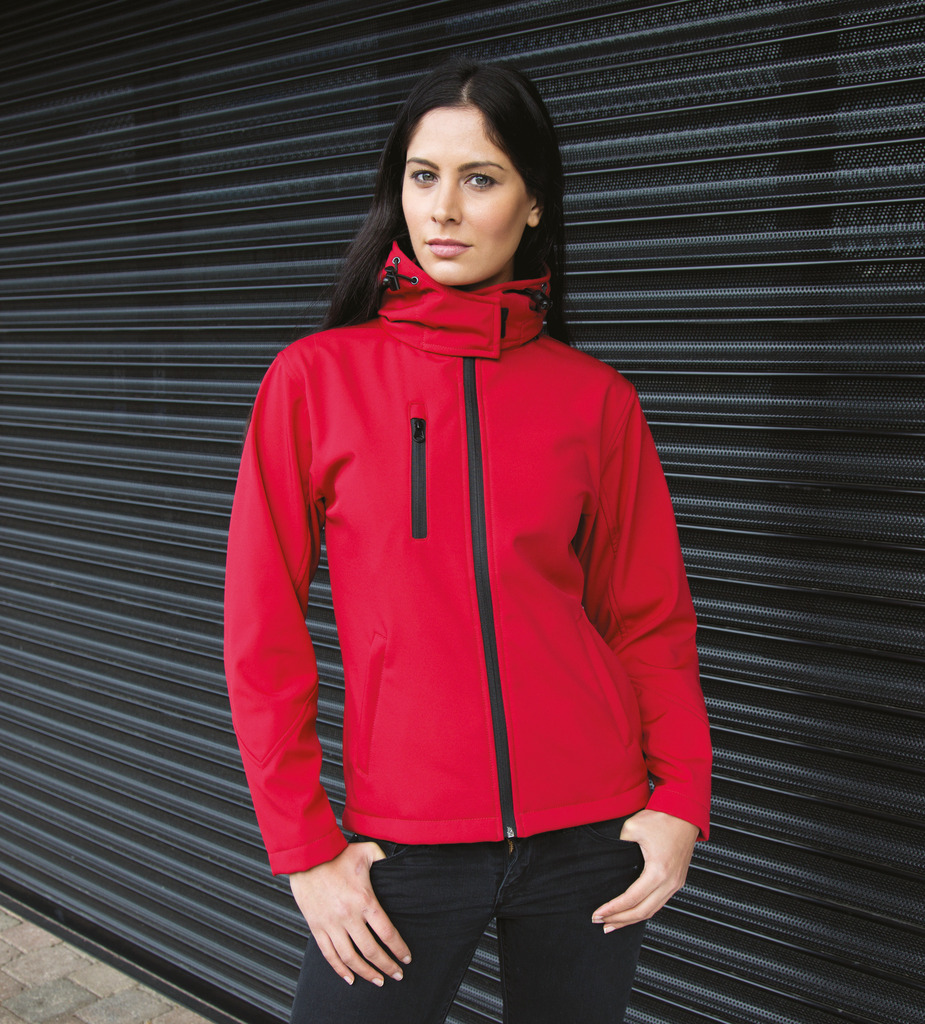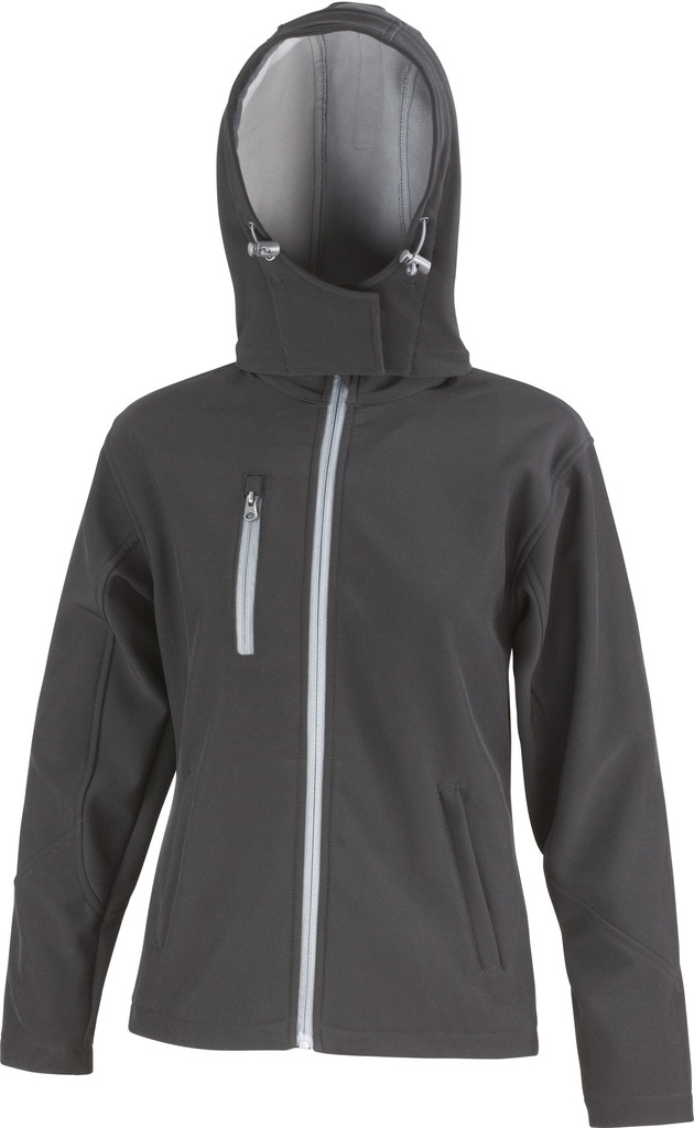 Tecido com 3 camadas soldadas: camada exterior: 93% poliéster / 7% elastano, camada intermédia: membrana TPU respirável 1000 g/m²/24h e impermeável a 8000 mm; camada interior: 100% poliéster micropolar. Acabamento repelente à água duradouro e corta-vento. Pala de protecção interior. Detalhe decorativo à frente e nas costas. Bolsos laterais e bolso do peito com fecho. Capuz amovÃvel e regulável. Corte justo.