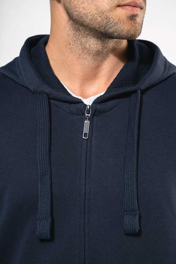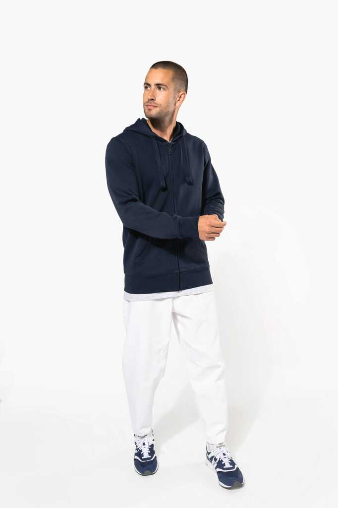 80% algodão penteado / 20% poliéster (Ash Heather: 79% algodão / 20% poliéster / 1% viscose). SuperfÃcie exterior 100% algodão. Tapa-costuras em contraste (contraste em Oxford Grey para todas as cores e na cor Oxford Grey e Ash Heather o contraste é em navy). Capuz forrado com malha tipo favo de mel e com cordão de ajuste. Bolso canguru. Punhos, cós e acabamento dos bolsos em malha canelada.