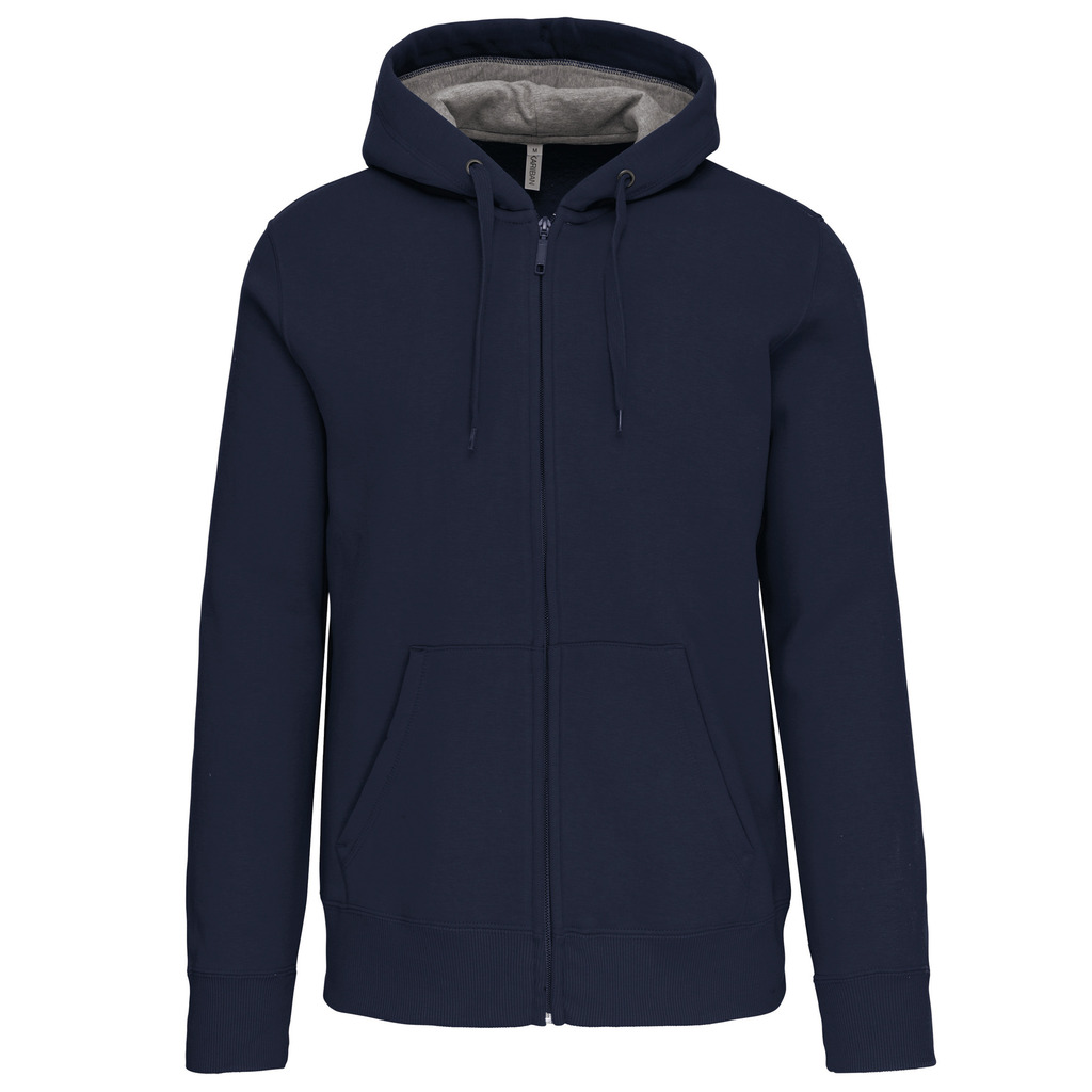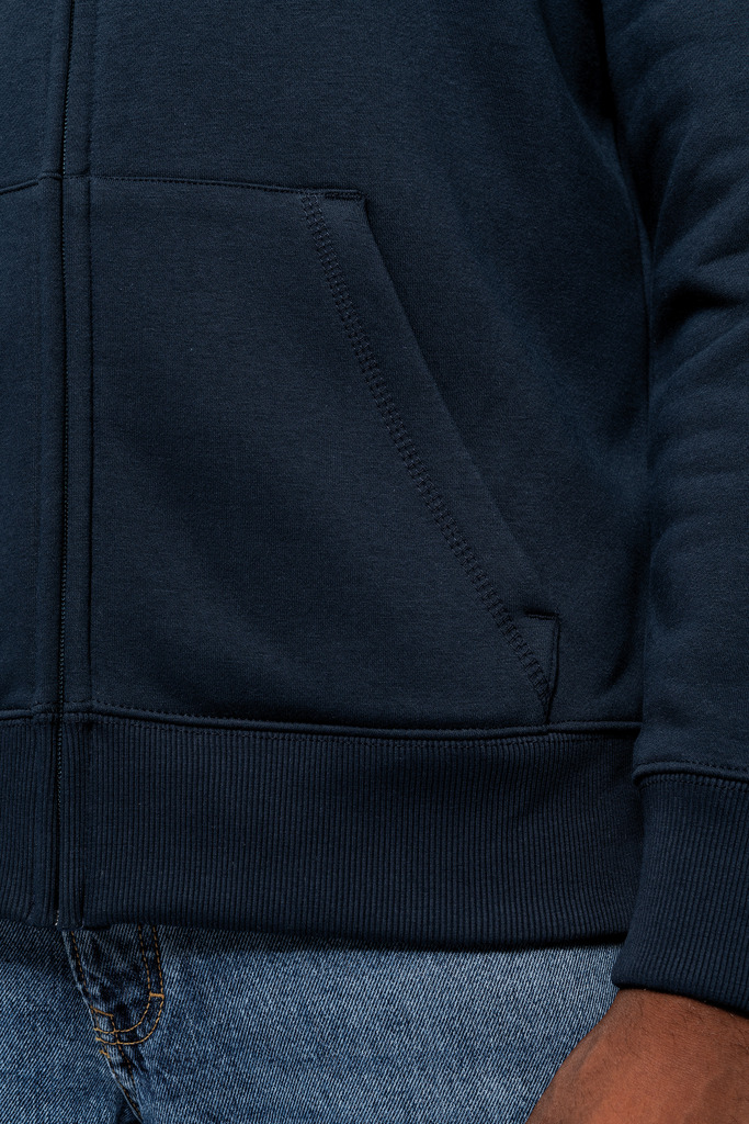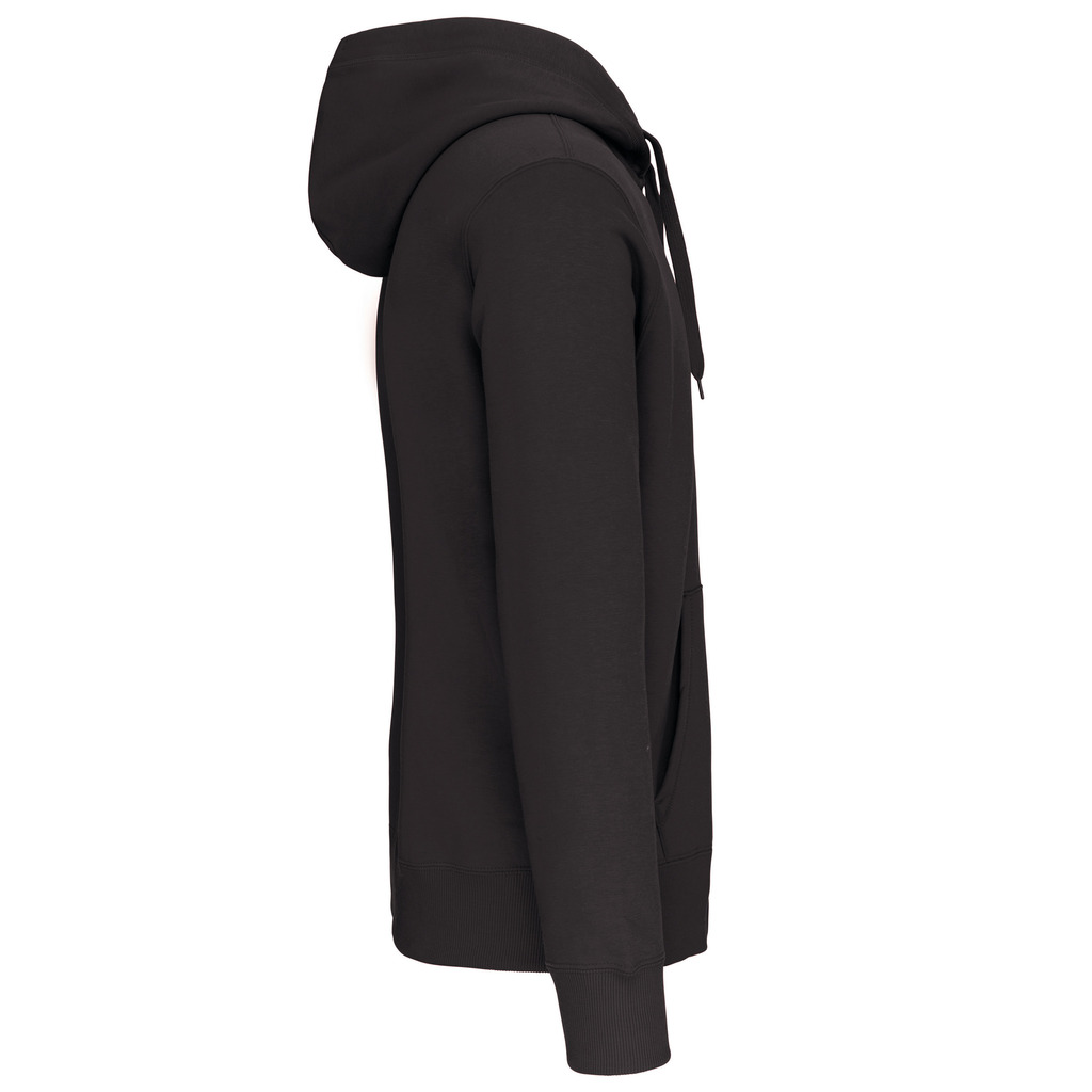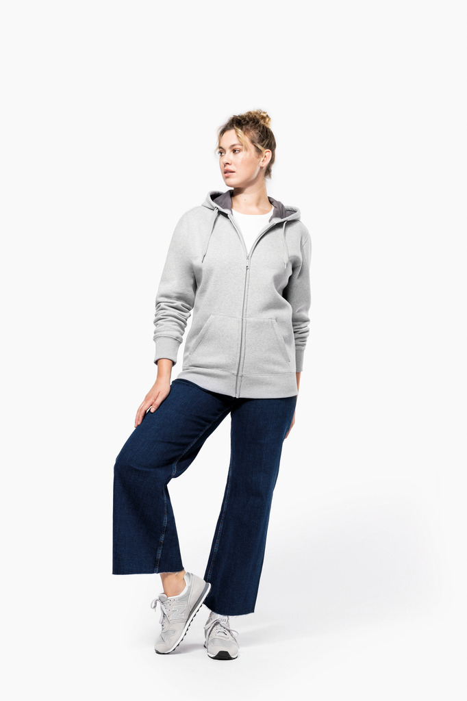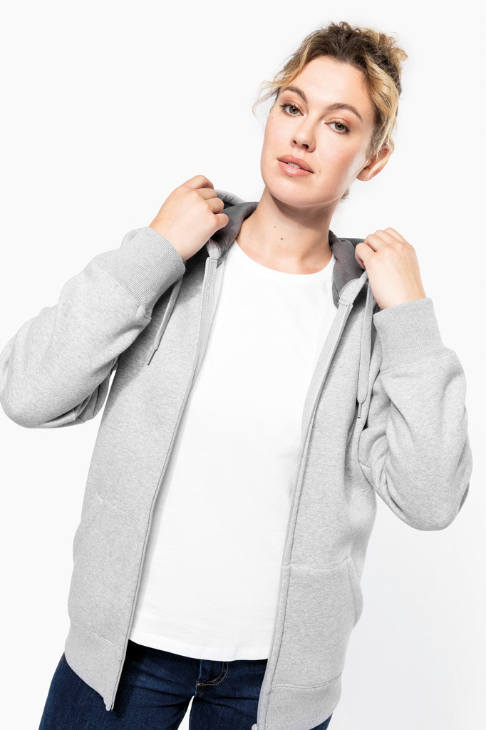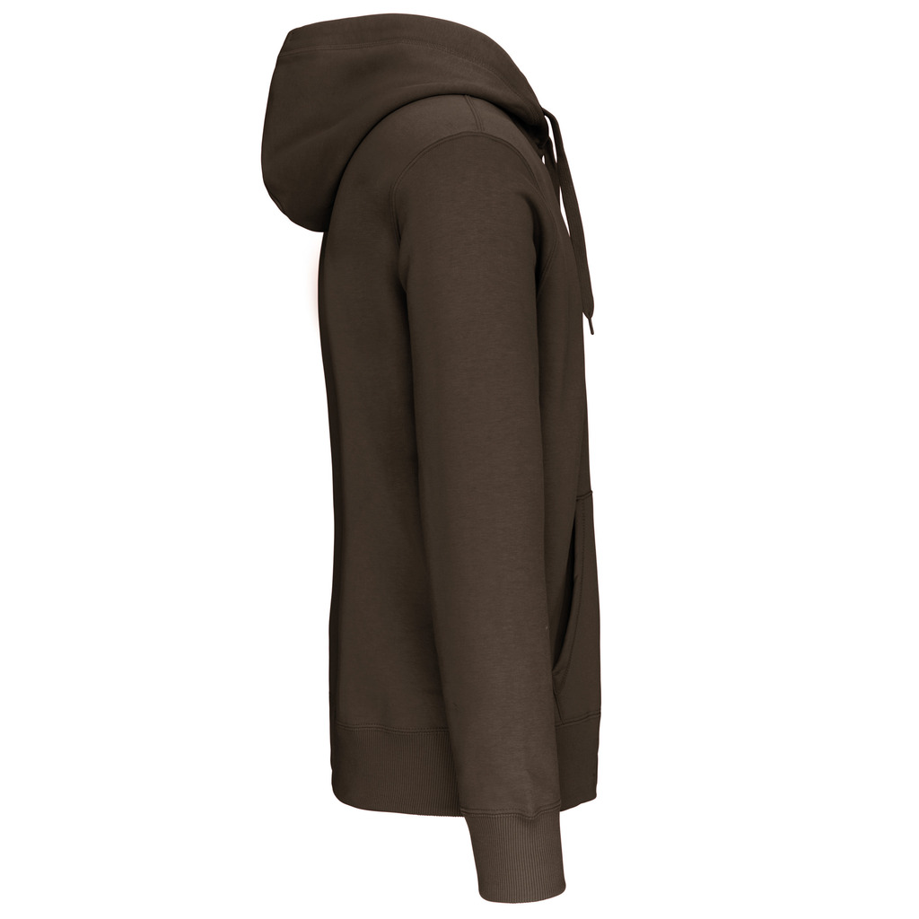 80% algodão penteado / 20% poliéster. Interior cardado. Lavagem com silicone. Interior do capuz em contraste. Tapa-costuras. Mangas set in. Bolsos frontais. Punhos e bainha com acabamento em rib.