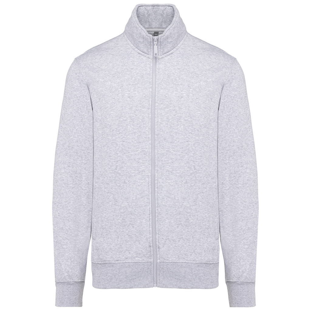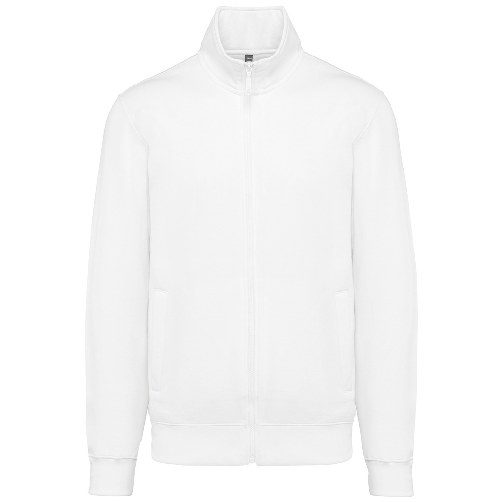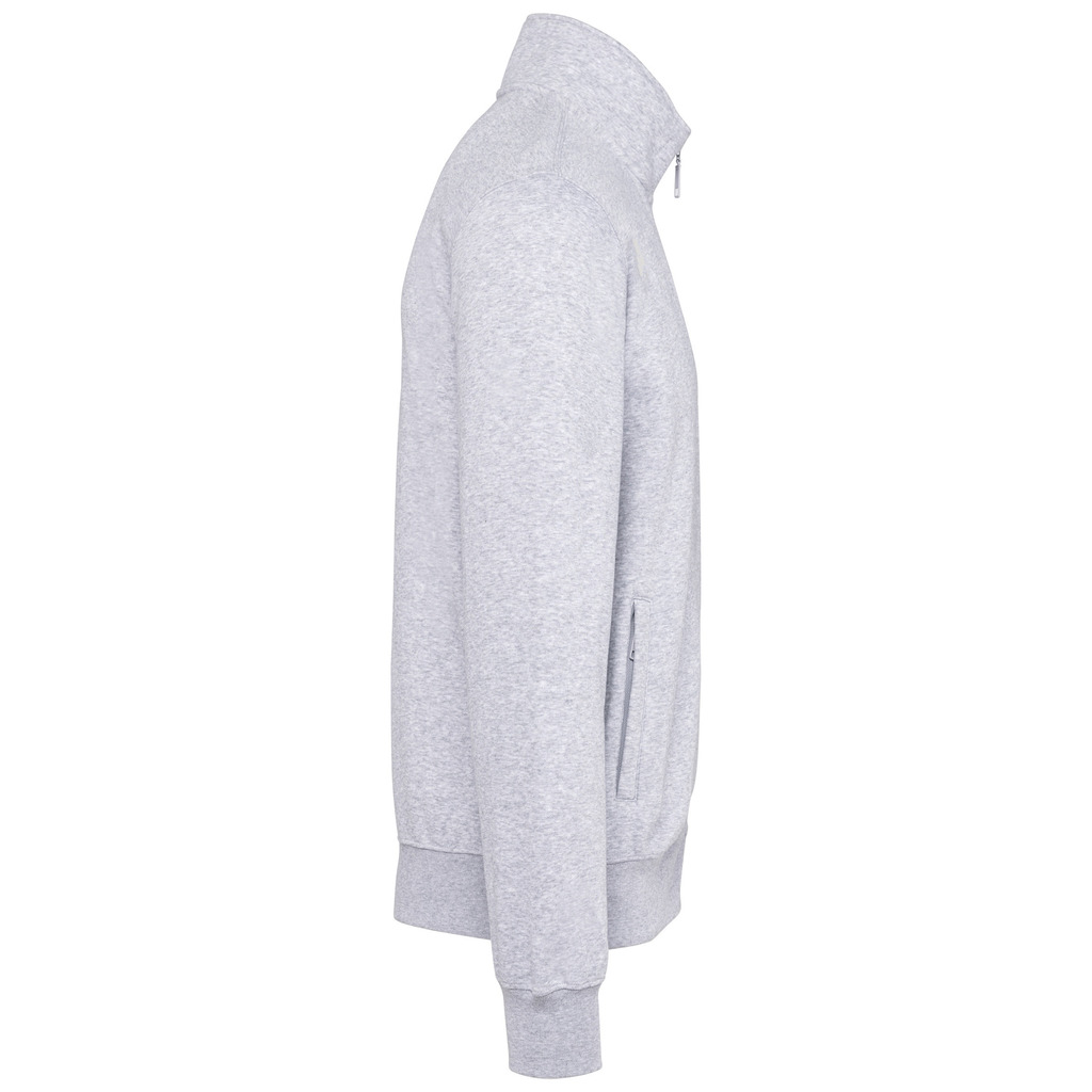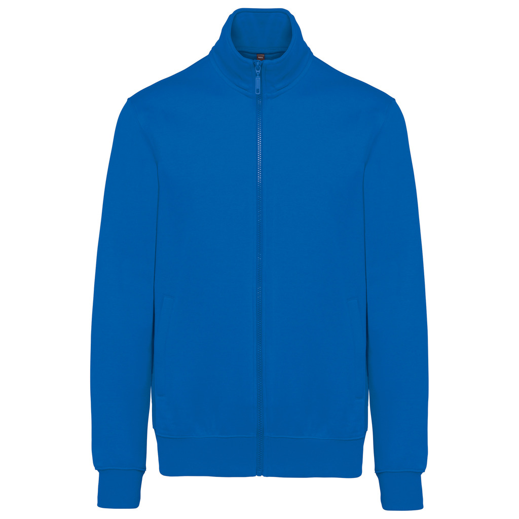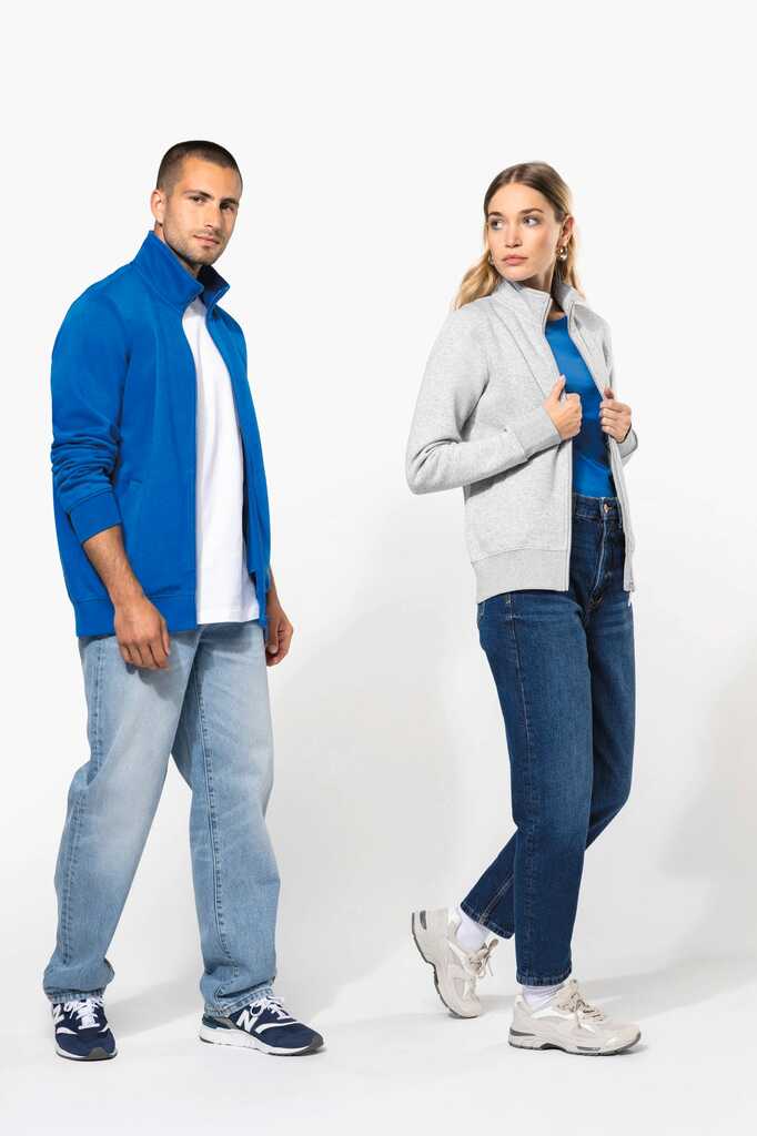 80% algodão / 20% poliéster. SuperfÃcie exterior 100% algodão. Tratamento LSF (Low Shrinkage Fleece: cardado pré-encolhido). Interior cardado com 3 fios em algodão penteado. Corte justo. Mangas direitas. Gola subida. Fecho plástico tom sobre tom. 2 bolsos com fecho e pesponto. Acabamento em meia-lua na interior da gola nas costas para facilitar a personalização. Acabamento em malha rib 1 x 1 nas mangas e no cós. Etiqueta da marca Tear-away.