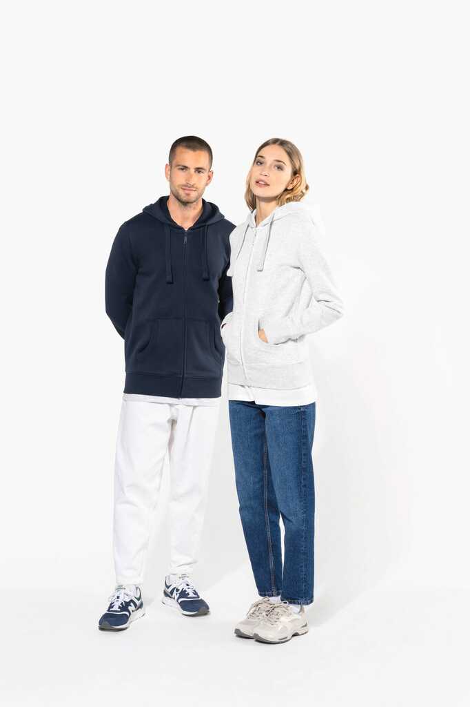 80% algodão penteado / 20% poliéster (Ash Heather: 79% algodão / 20% poliéster / 1% viscose). SuperfÃcie exterior 100% algodão. Interior cardado. Tapa-costuras em contraste (Navy para a cor Oxford Grey e Ash Heather ; Oxford Grey para todas as outras cores). Capuz forrado em malha tipo favo de mel. Bolsos à canguru. Punhos e cós em malha rib.