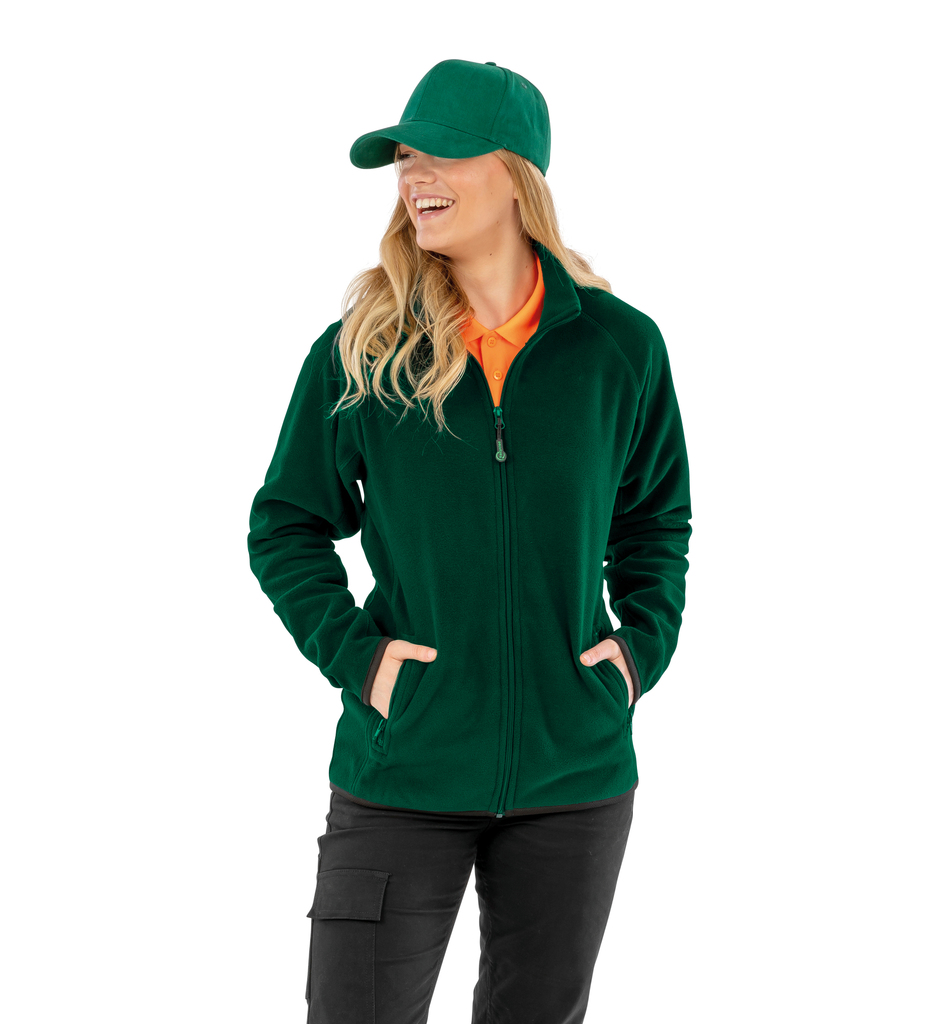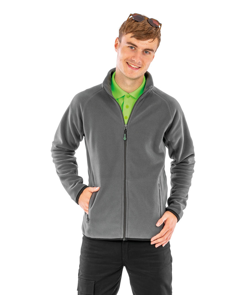 100% poliéster. 100% poliéster reciclado. Fio resistente de alta qualidade. Peça fabricada a partir de garrafas de plástico PET reciclado. Com fecho frontal ecológico YKK NATULON®. Presilha para pendurar. Pesponto decorativo no corpo. Bolsos laterais forrados a polar com fecho. Punhos e cós com recobrimento. Fibra densa para manter o calor. De secagem rápida e facilita a evaporação da humidade.