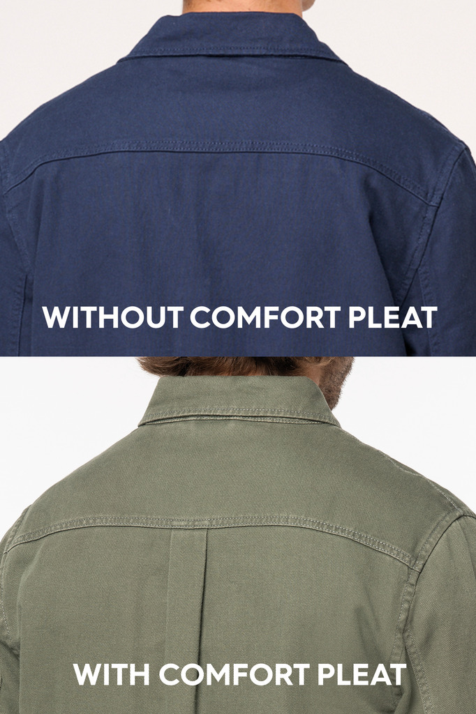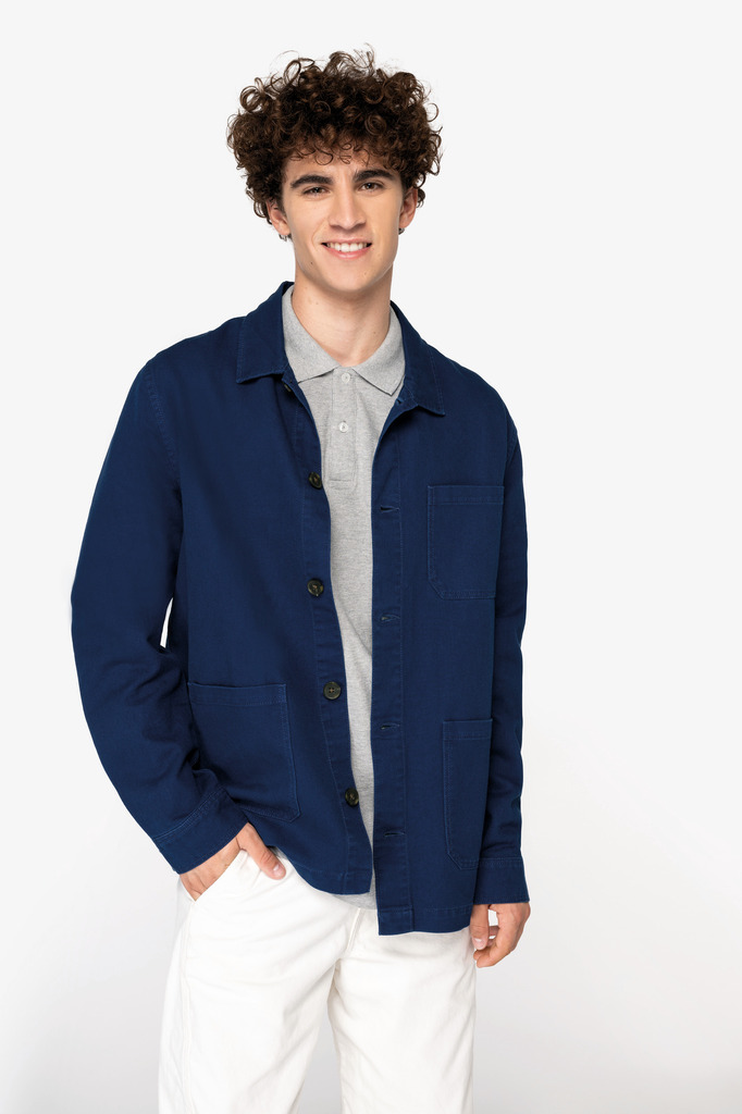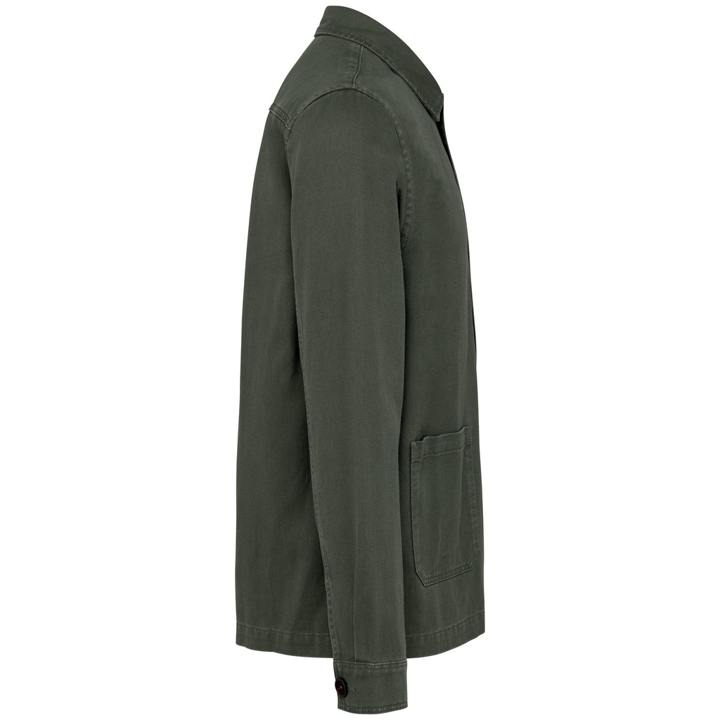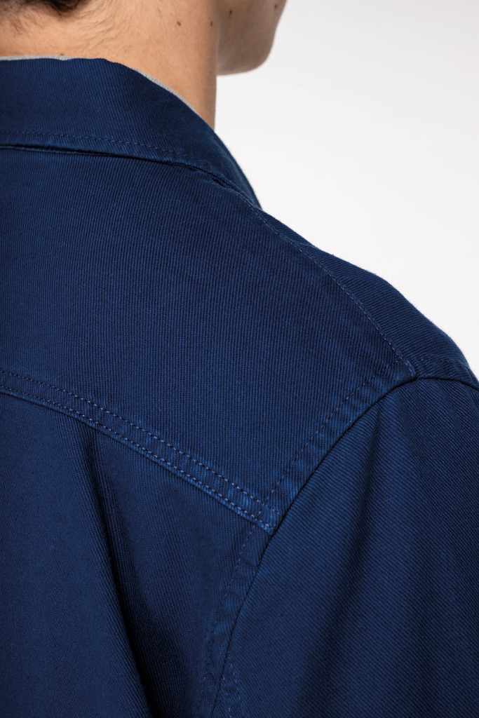50% algodão biológico / 50% linho. Corte direito. Botões em plástico reciclado. Carcela em contraste em Dark Red no punho esquerdo. Bolso placado no peito esquerdo. Colarinho com suporte fantasia. Punhos com botões em plástico reciclado e abertura. Encaixe nas costas. Forro na parte de cima da peça com patch de personalização. Peça lavada após montagem: as cores podem variar ligeiramente de uma peça para outra. Este produto é susceptÃvel de tingir em contacto com superfÃcies ou peças de roupa claras. Para tornar possÃvel a personalização nas costas, note que a prega traseira foi removida nos novos produtos.