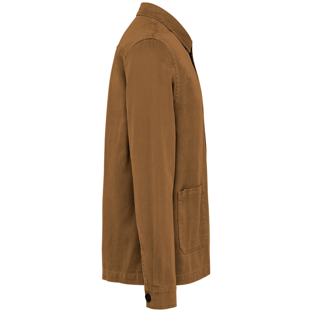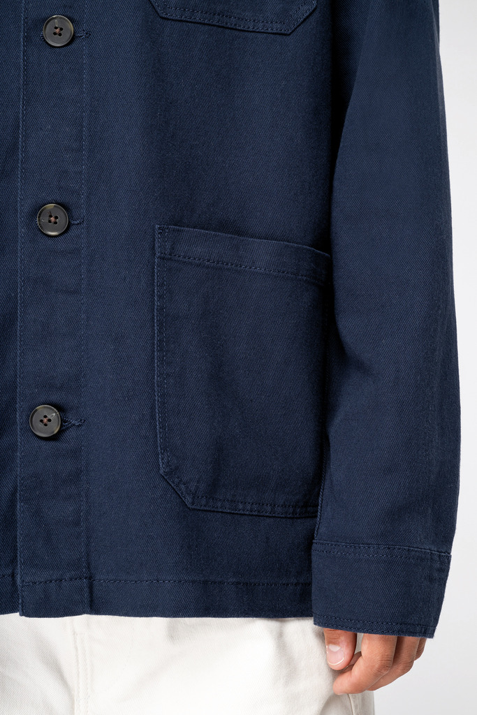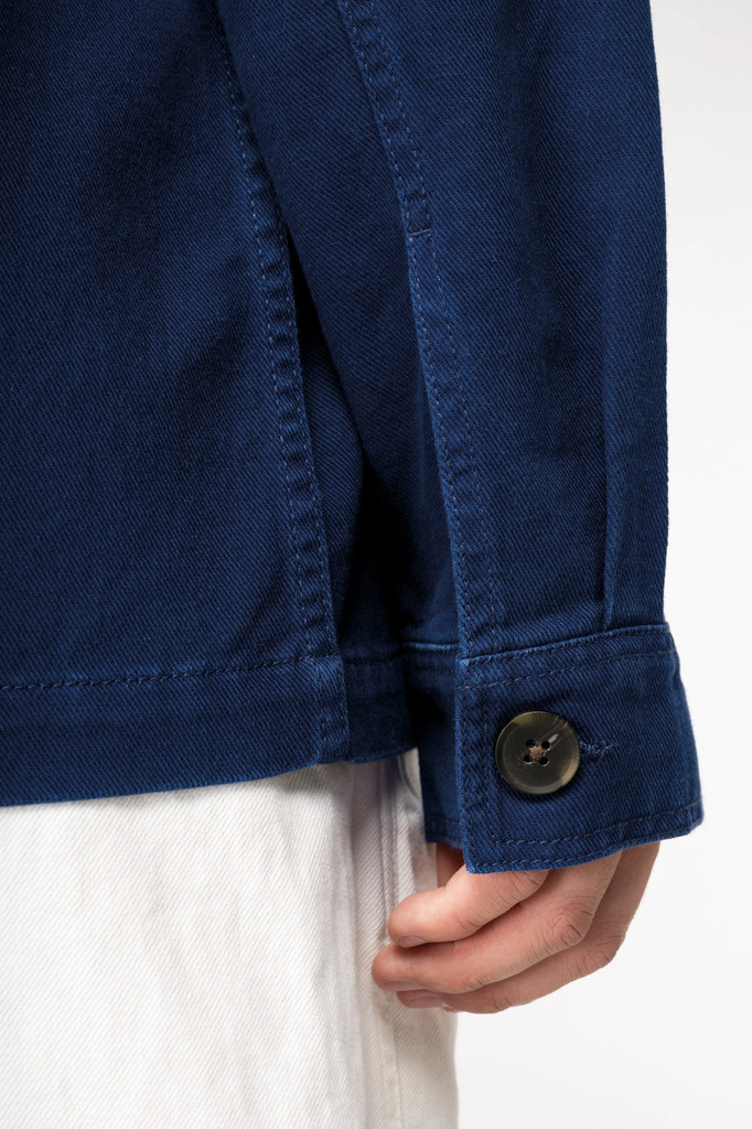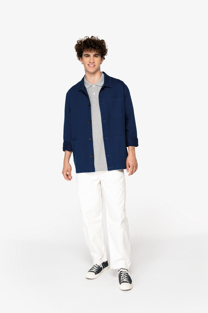 50% algodão biológico / 50% linho. Corte direito. Botões em plástico reciclado. Carcela em contraste em Dark Red no punho esquerdo. Bolso placado no peito esquerdo. Colarinho com suporte fantasia. Punhos com botões em plástico reciclado e abertura. Encaixe nas costas. Forro na parte de cima da peça com patch de personalização. Peça lavada após montagem: as cores podem variar ligeiramente de uma peça para outra. Este produto é susceptÃvel de tingir em contacto com superfÃcies ou peças de roupa claras. Para tornar possÃvel a personalização nas costas, note que a prega traseira foi removida nos novos produtos.