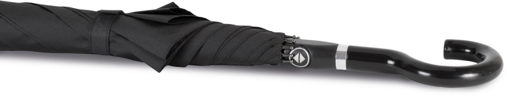 Chapéu-de-chuva com cabo deslizante 23′ (58,5 cm), abertura automática, cabo em metal, varetas e pontas das varetas em fibra de vidro, biqueira do chapéu-de-chuva antichoque. Tecido em pongée poliéster 190T. Graças ao seu cabo deslizante, o chapéu-de-chuva mede 95 cm aberto e 85 cm fechado.