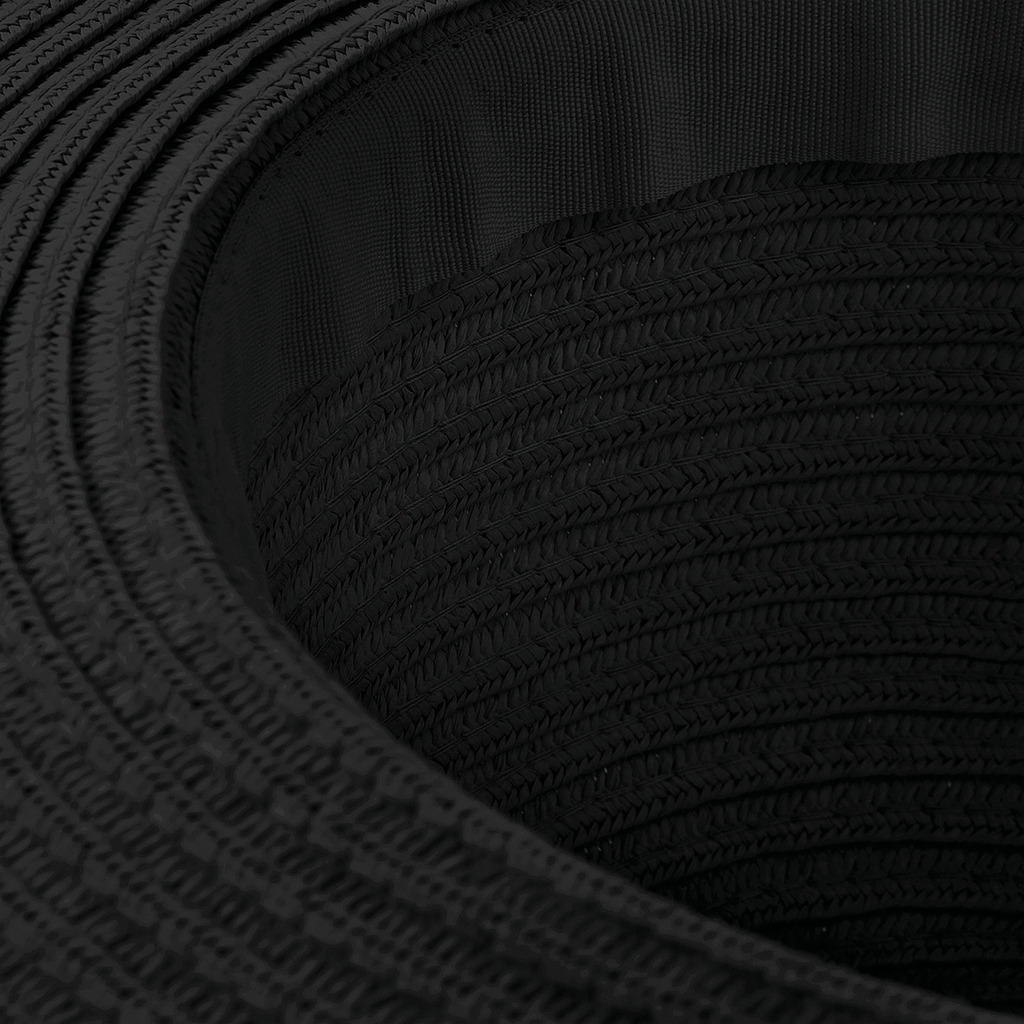 100% palha de papel. Fita para absorção da transpiração 100% poliéster. Etiqueta TearAway. Copa redonda. Aba larga.
