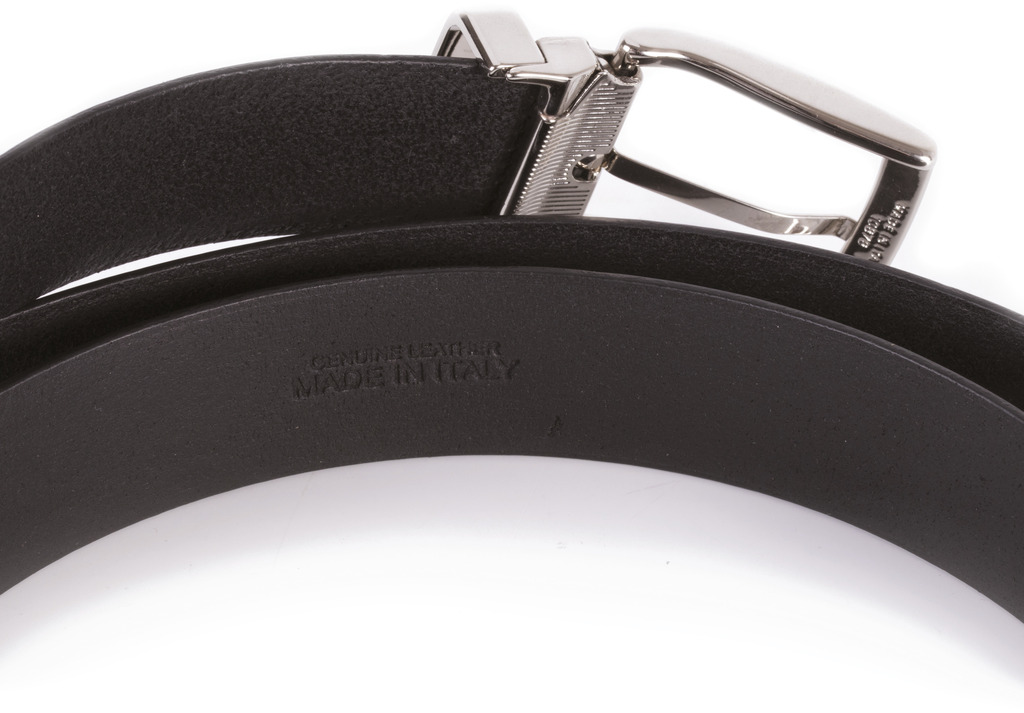 100% couro. Pele de vaca de flor integral com acabamento de anilina. Fabricado em Itália. Espessura: 30 mm. Comprimento total do cinto: 125 cm. Regulável do tamanho XS ao XXL, com possibilidade de ser cortado pelo comprimento pretendido, já que a fivela é amovÃvel. Fornecido em bolsa de algodão para facilitar a personalização.