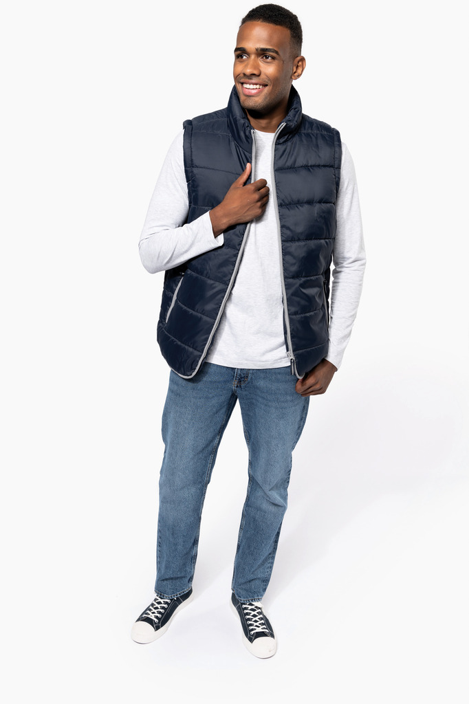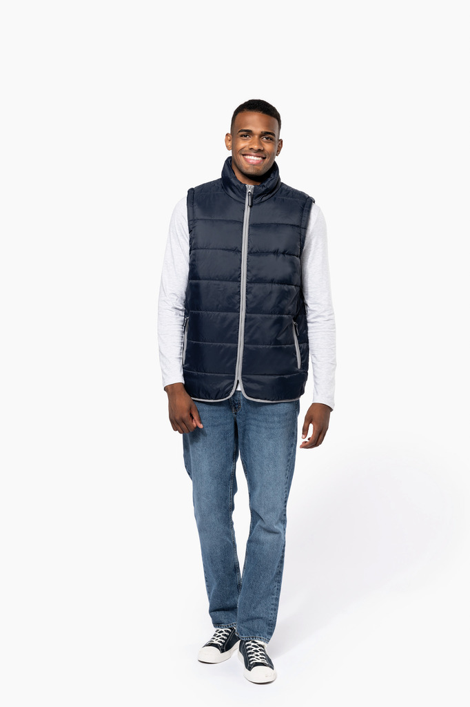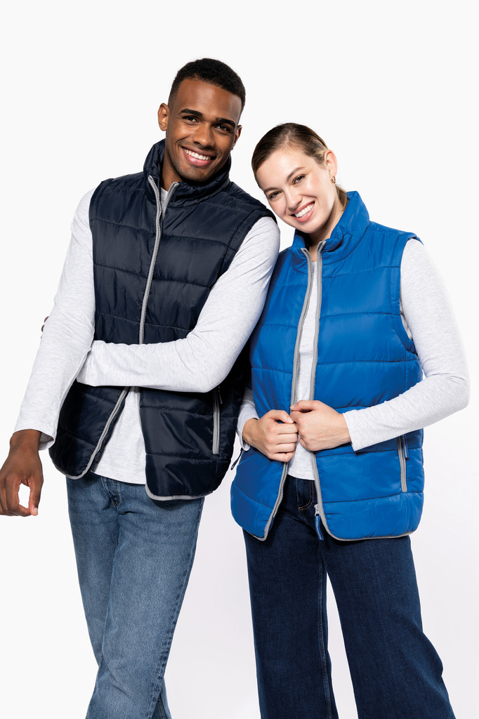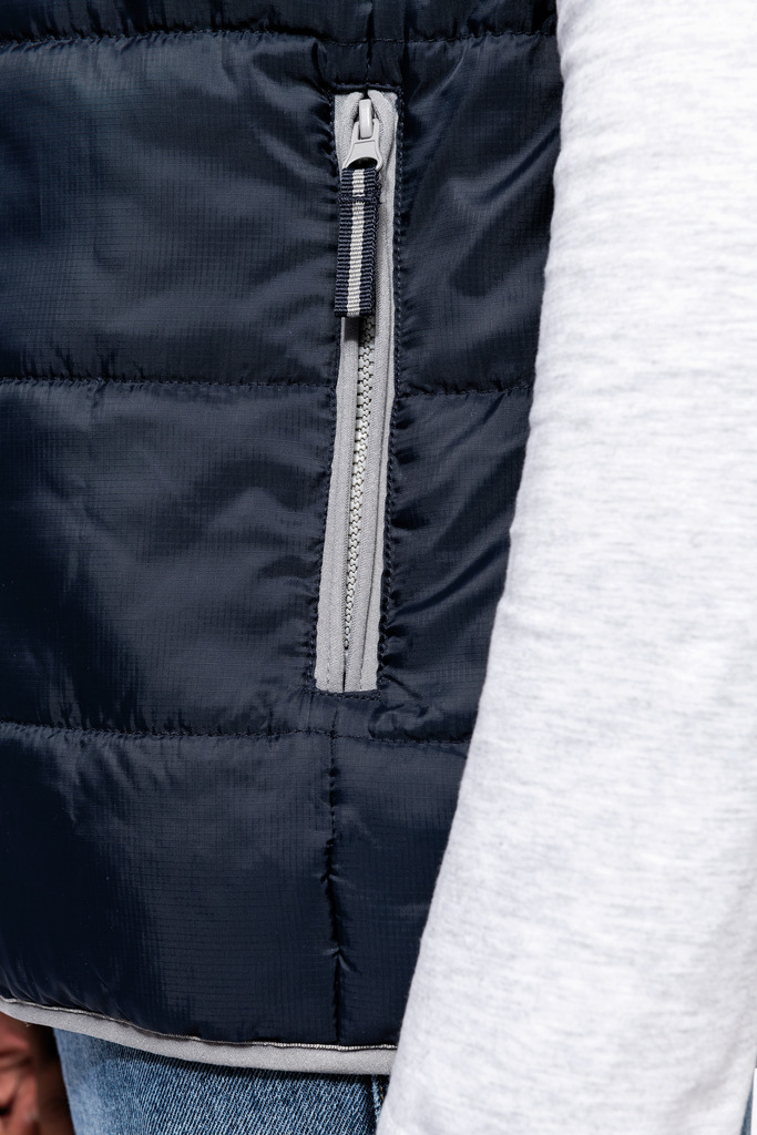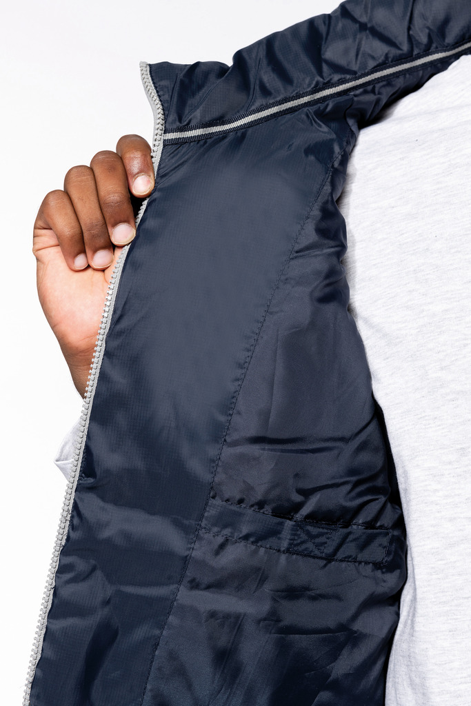 Exterior: 100% poliéster ripstop com revestimento acrÃlico. Interior em poliéster. Forro em poliéster 210T. Corte moderno e confortável. 2 bolsos exteriores com fecho. 1 bolso interior com ajuste em velcro. Fecho em contraste cinzento e faixa em contraste cinzenta na zona frontal, nos bolsos e no cós. Fecho de acesso para personalização na zona inferior e no peito.