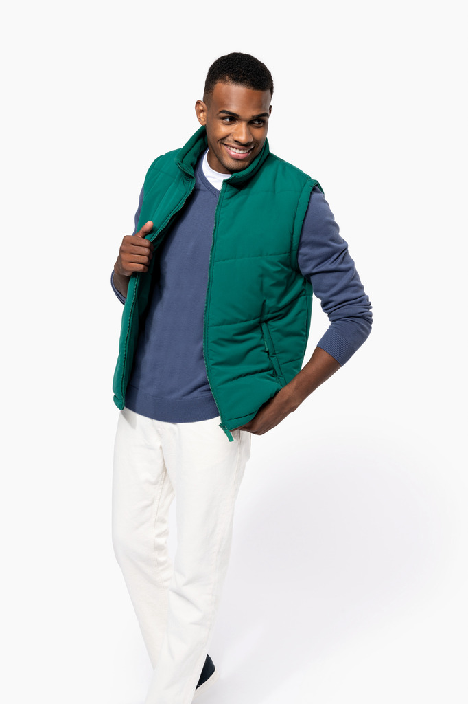 Exterior: 100% poliéster microfibra. Interior em 100% poliéster. Forro interior polar 100% poliéster. Quente e confortável. 2 bolsos exteriores com fecho e pespontos, 1 bolso interior com ajuste em velcro. Fechos, acabamentos e forro à cor. Fecho de acesso para personalização na zona inferior e no peito.