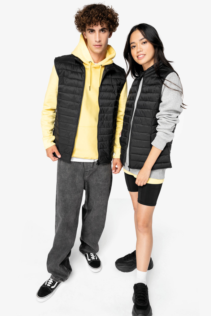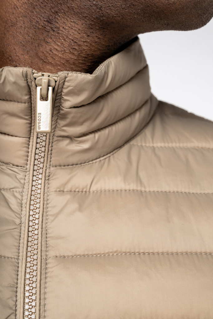 100% poliamida reciclada. Enchimento com efeito de penas em 50% Sorona® e 50% poliéster reciclado. Corte direito. Gola subida. Toque suave e liso. Tecido repelente à água nÃvel 4 e corta-vento 4 mm/s. Fechos em plástico reciclado tom sobre tom. Dois bolsos laterais com fecho invisÃvel em nylon reciclado. Dois bolsos interiores. Encaixes nos ombros e nas laterais. Ligeiramente mais comprido à frente do que nas costas. Entregue com saco para guardar. Largura entre os pespontos na frente e nas costas: 4,5 cm; meio das costas: 9,5 cm. Peso médio do tamanho L : 250g.