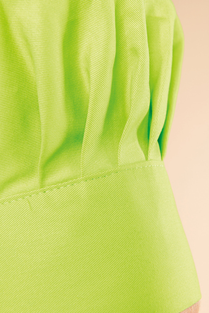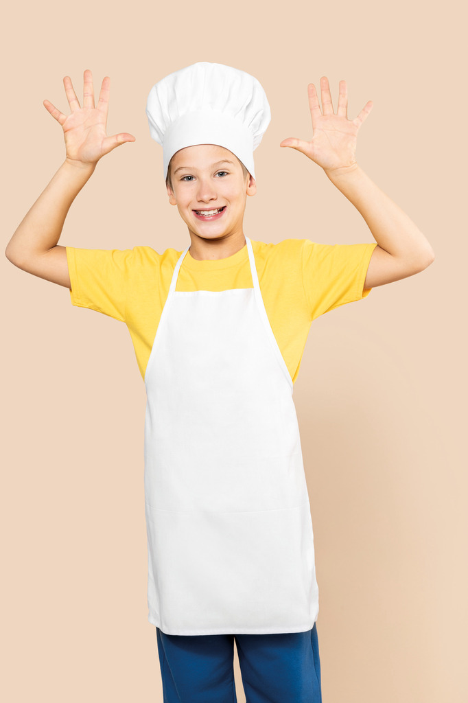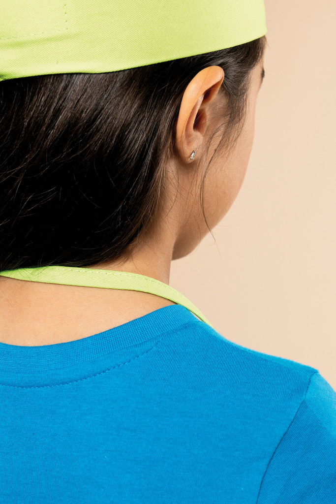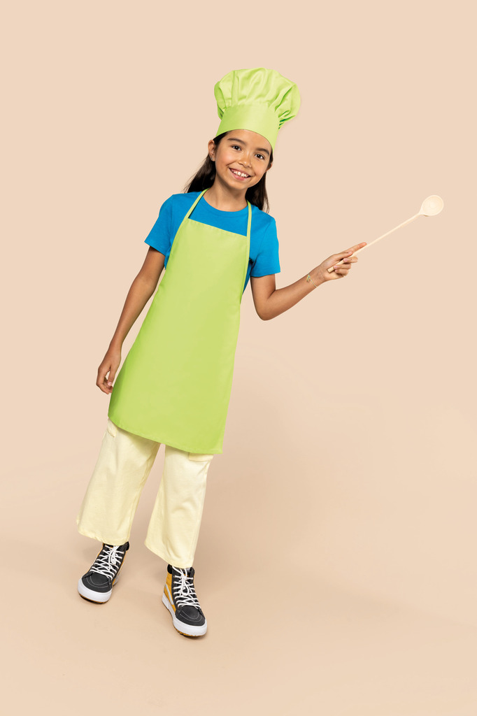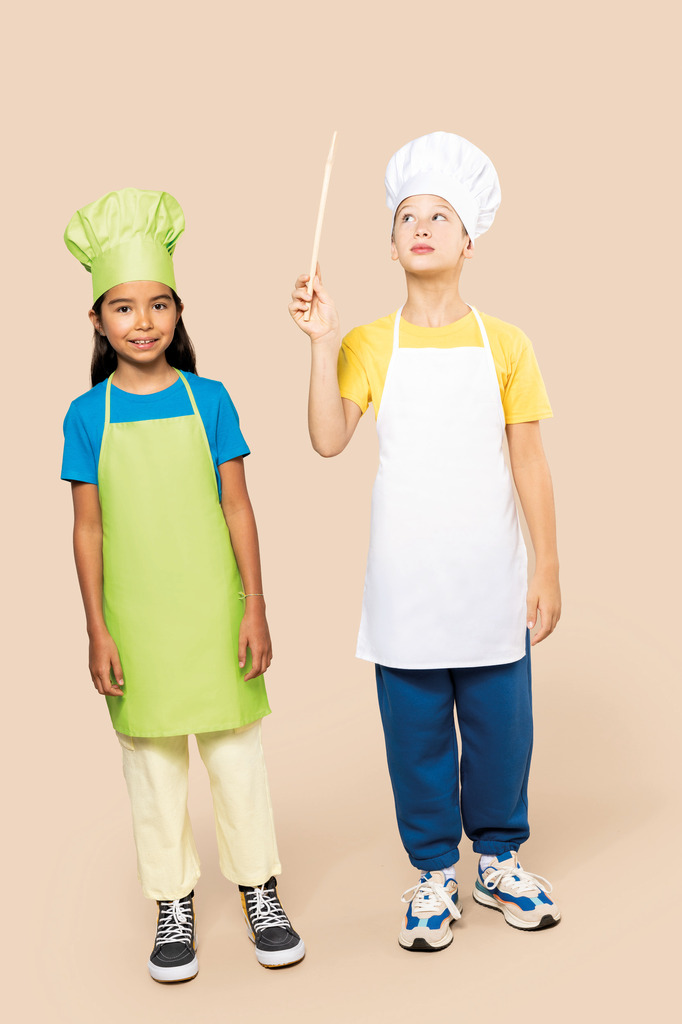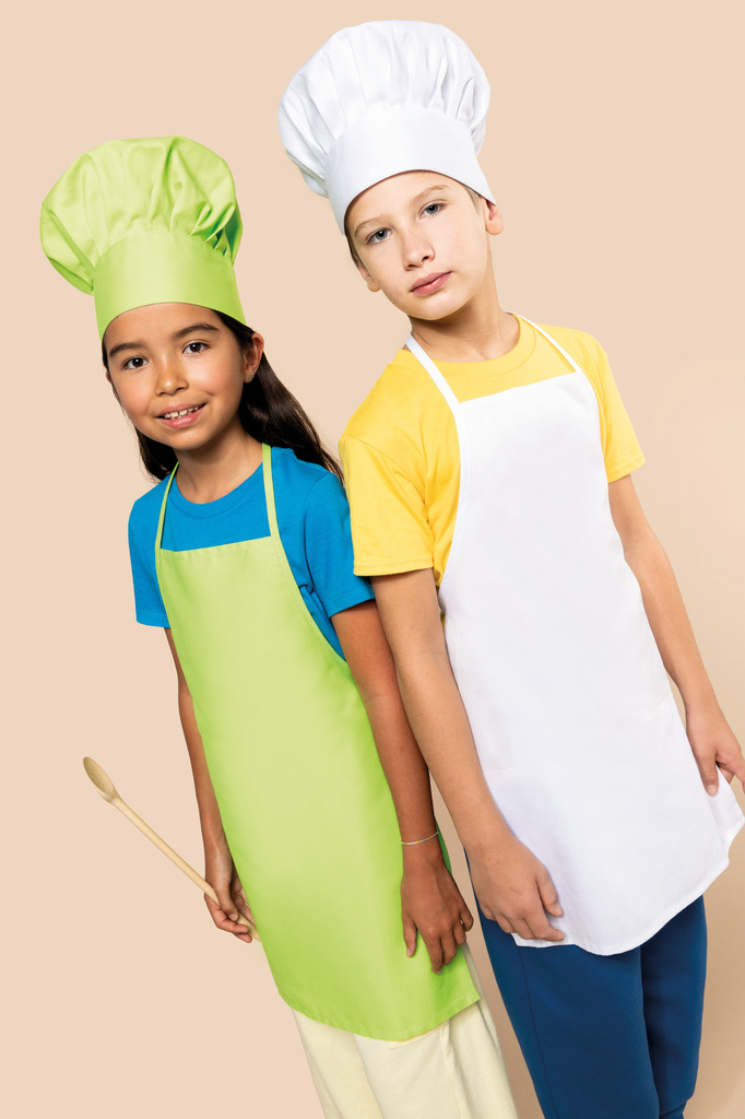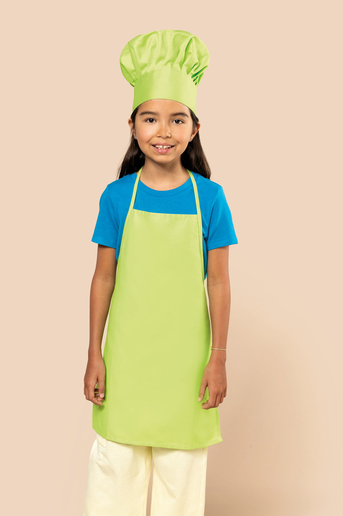 100% algodão. Conjunto composto por uma touca e um avental. Touca com ajuste em velcro.