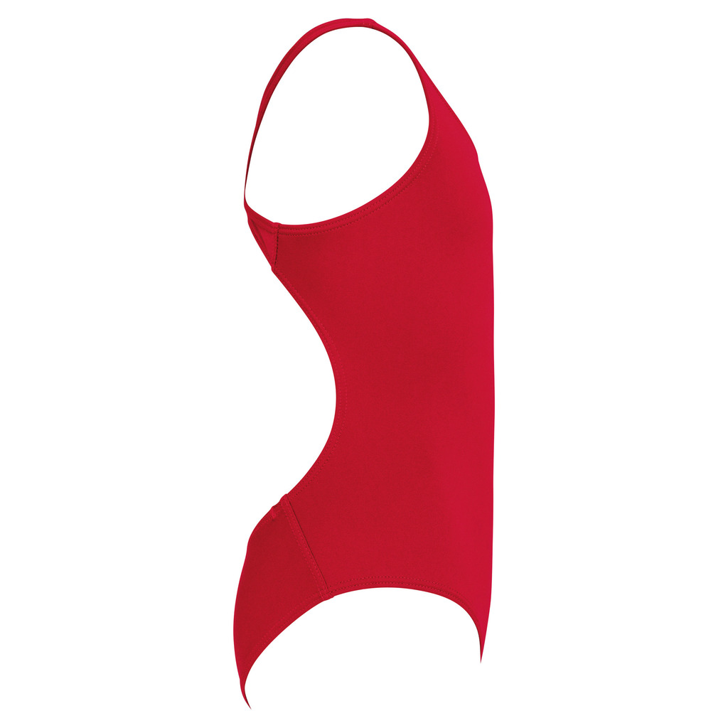 100% poliéster, do qual 43% é politereftalato de butileno. Material muito extensÃvel. Resistente ao cloro. Protecção UV 50+. Alças largas para um melhor ajuste. Abertura redonda nas costas. Totalmente forrado na frente para evitar a transparência. Acabamento com pespontos duplos. Fabricado em Espanha.