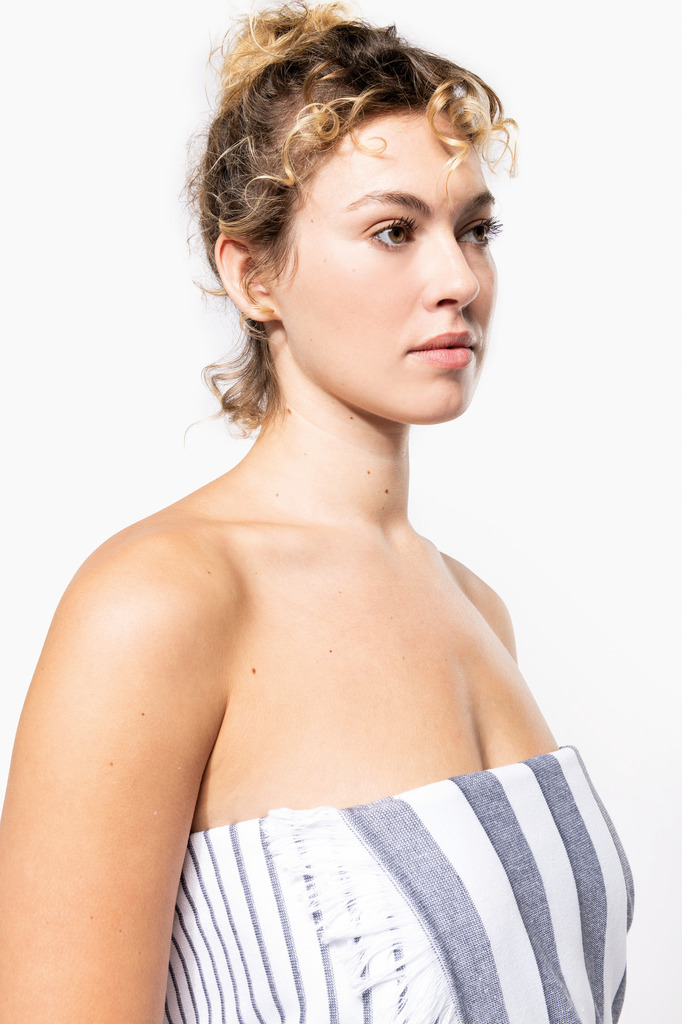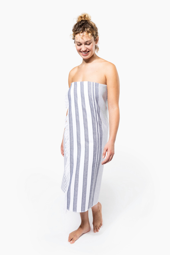 100% algodão. Dimensões: 100 cm x 180 cm. Um lado em algodão jacquard e o outro lado em turco.