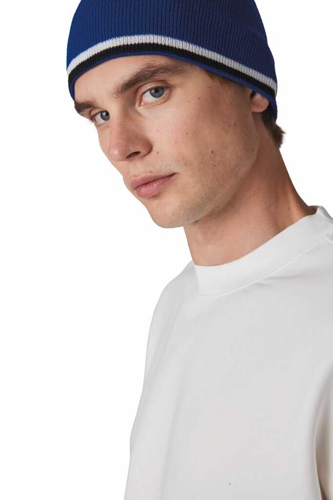 100% acrÃlico. Gorro em malha com faixa em contraste.