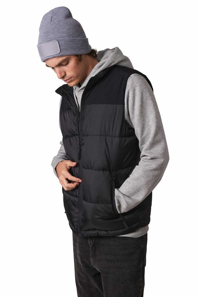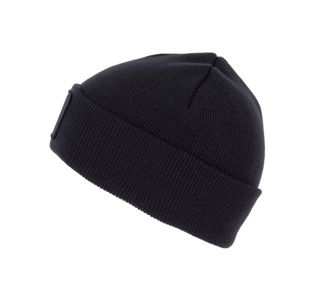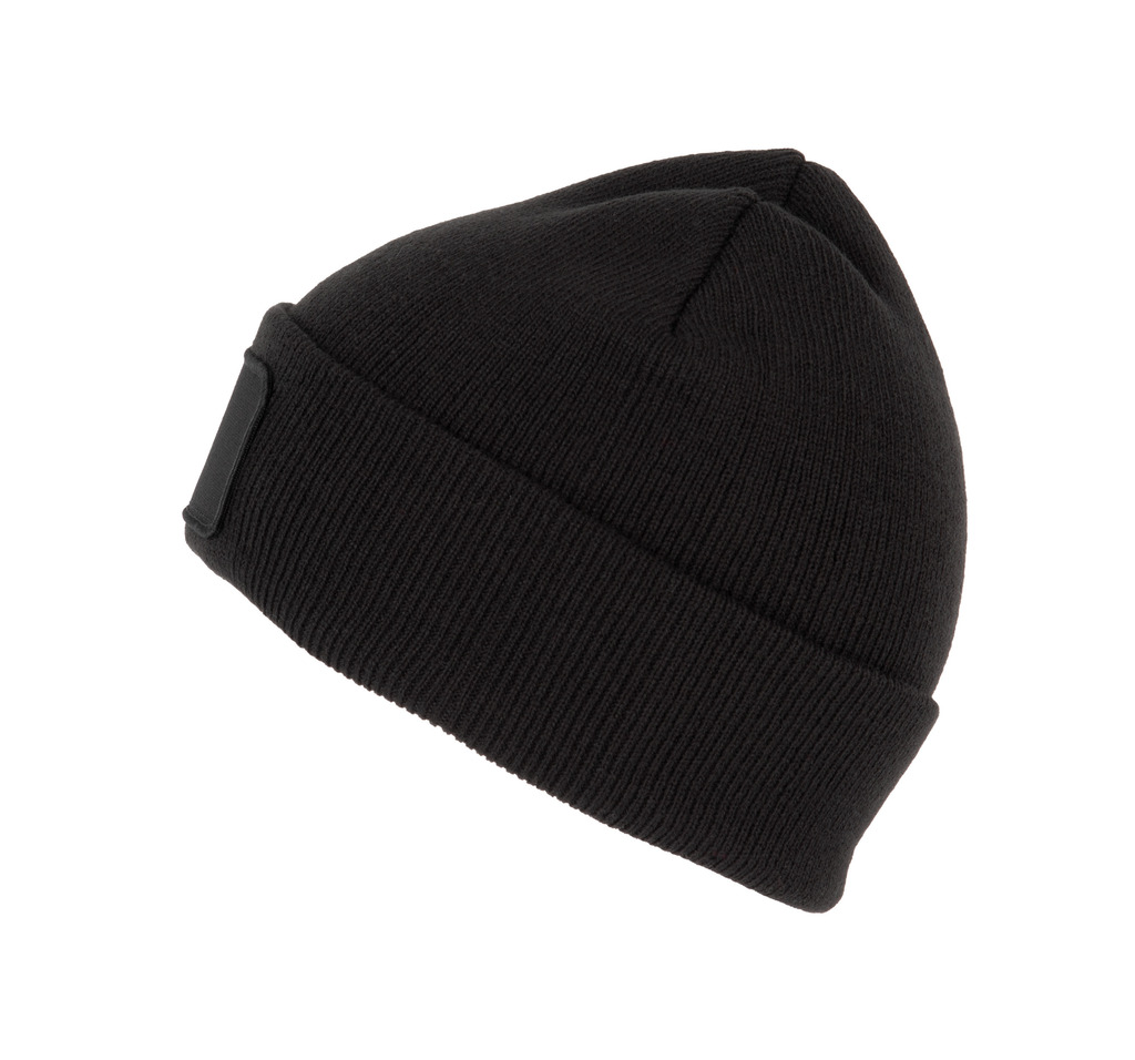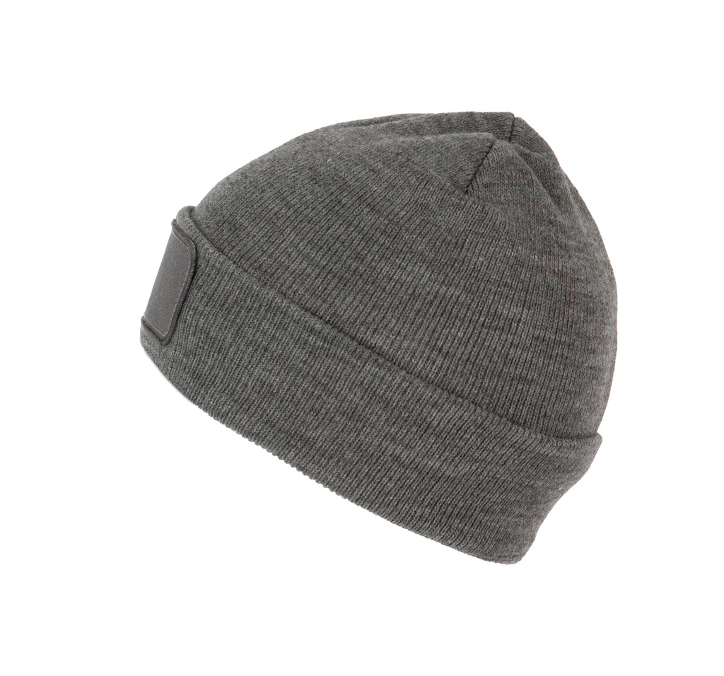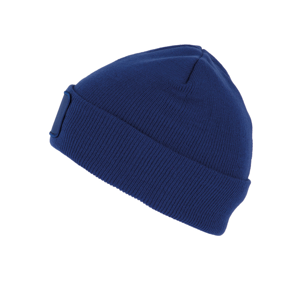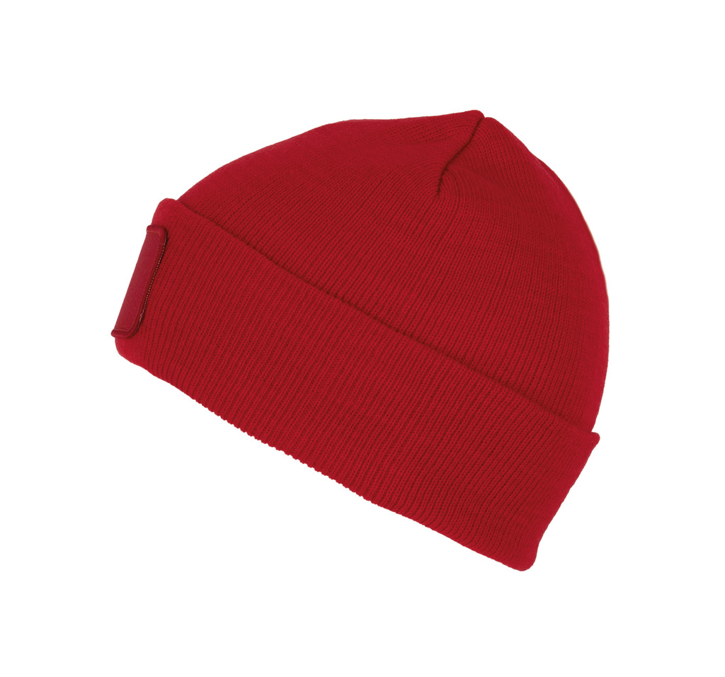 100% acrÃlico. Gorro tricotado em acrÃlico suave. Patch em algodão na parte frontal para facilitar a personalização. Etiqueta da marca Tear-away.