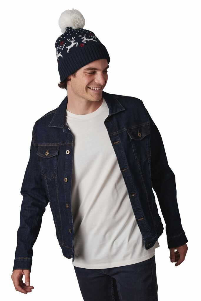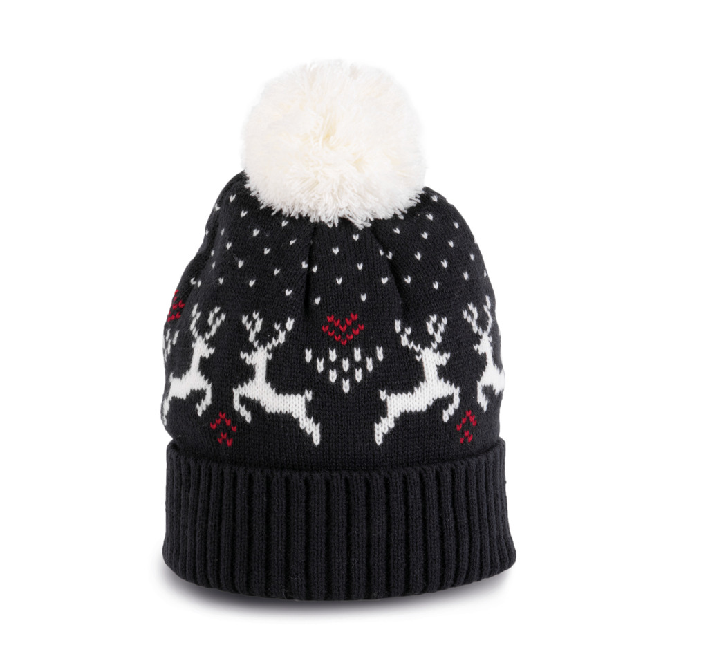 100% acrÃlico. Borda 100% poliéster. Gorro com motivo renas.