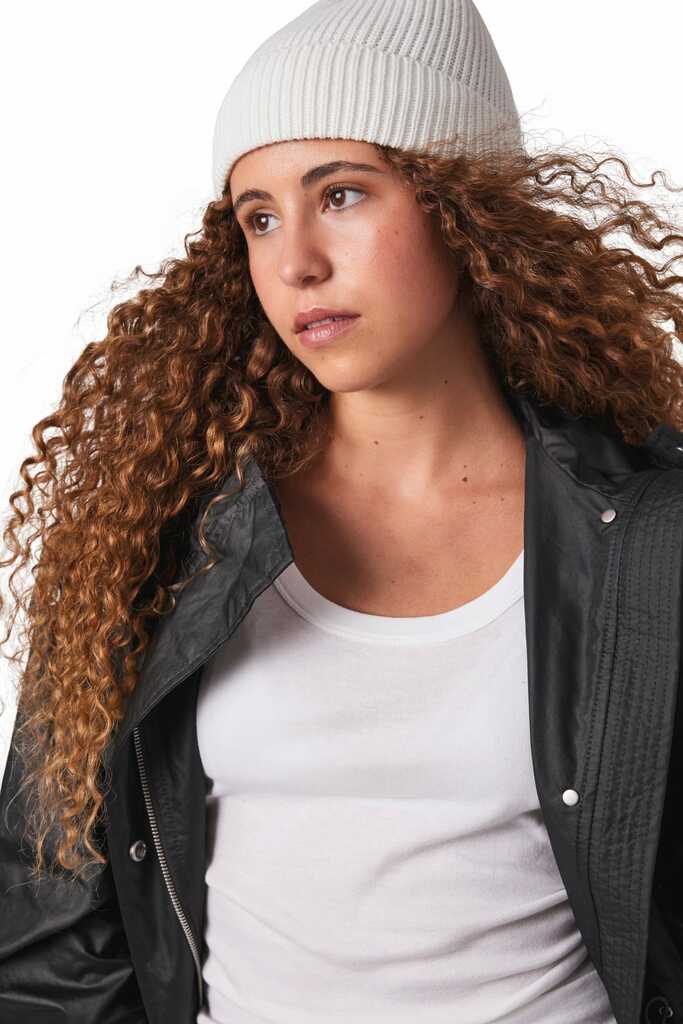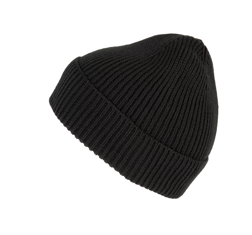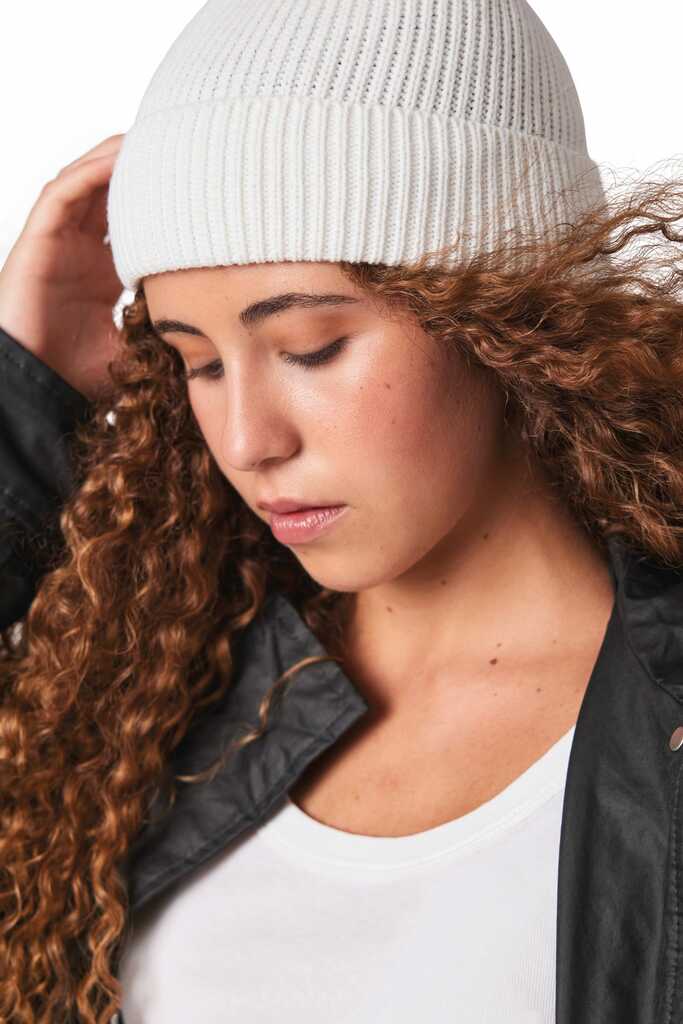 100% Polylana® (50% poliéster reciclado/50% poliéster). Gorro com dobra. A fibra de Polylana® é um material suave e agradável com um toque tipo lã. Alternativa ao acrÃlico caracteriza-se por ter um fraco impacto ambiental. A sua produção necessita de menos energia, de água e emissões de CO2. O fio de Polylana® tem certificado Impact Awareâ„¢ que garante ao longo da cadeia de produção um produto 100% transparente e integro e a com possibilidade através da plataforma blockchain Awareâ„¢ de verificar a autenticidade da fibra Polylana®. Uma etiqueta especial com um QR code permite aceder à plataforma Awareâ„¢ e autenticar directamente as certificações com um simples smartphone.