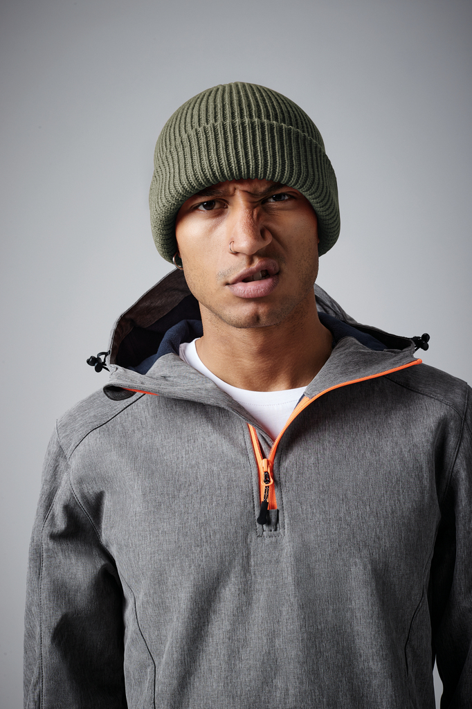 50% poliéster/50%a acrÃlico. Contém no mÃnimo 50% poliéster reciclado; poliéster reciclado fabricado a partir de 100% PET, equivalente a cerca de 1,5 garrafas pós-consumo. Malha canelada. Forro em algodão jersey para mais conforto e respirabilidade. Etiqueta TearAway para facilitar a personalização.