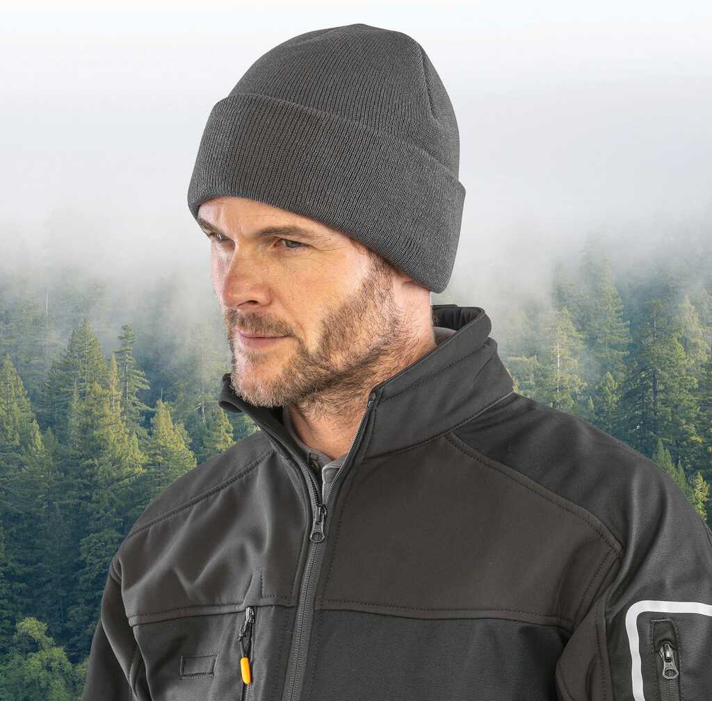 50% poliéster reciclado/50% poliacrÃlico. Fios resistentes e de alta qualidade. Peça fabricada a partir de garrafas de plástico PET reciclado. Secagem rápida (Quick Dry). Gorro com dobra. Espessura dupla. Forro 3M Thinsulate.