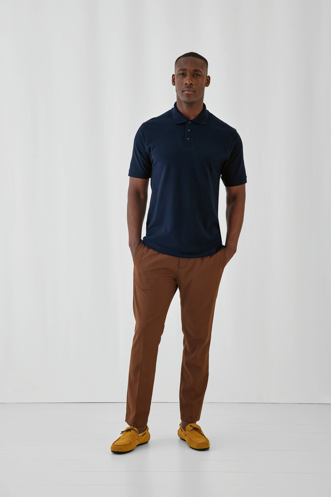 100% algodão ringspun penteado pré-encolhido (excepto Heather Grey: 90% algodão/10% viscose). Colarinho e acabamento das mangas em malha rib 1 x 1. Tapa-costuras no colarinho. Carcela reforçada por banda termocolada com 3 botões. Botões à cor. Costuras laterais. Aberturas laterais.