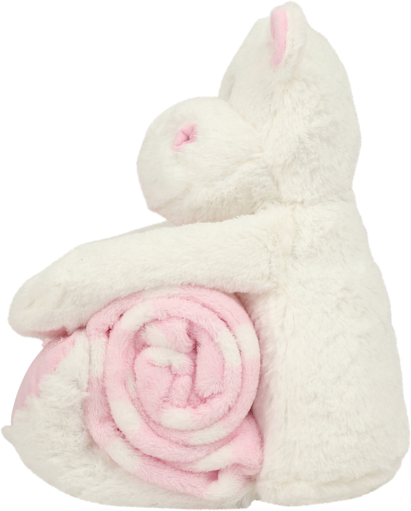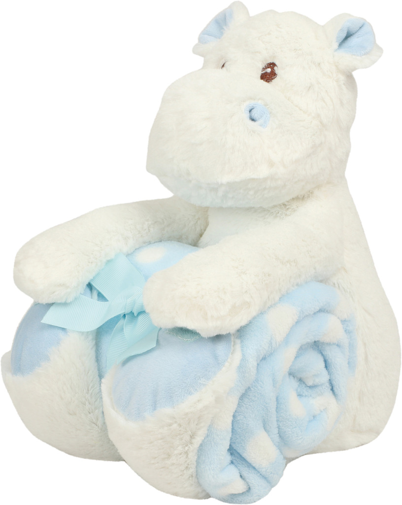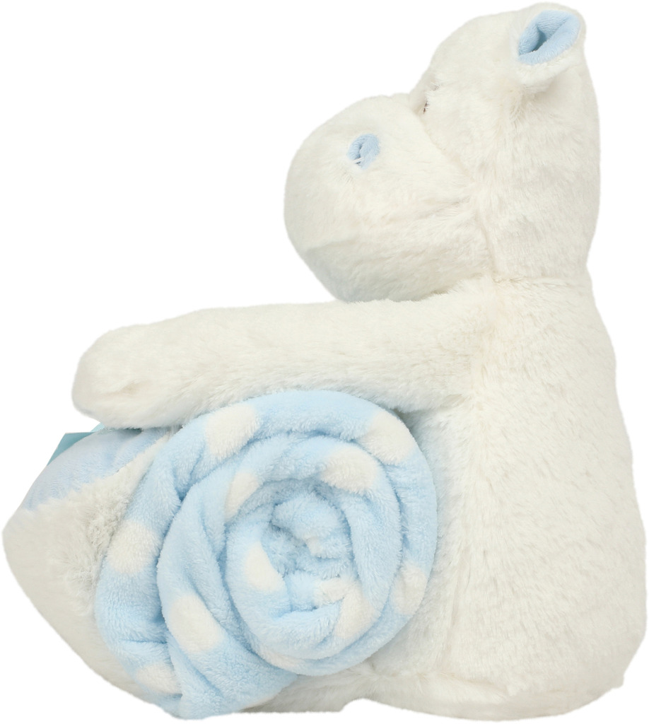100% poliéster. Olhos cosidos. Fecho com velcro nas patas. Capa em veludo às bolinhas azuis e brancas. Em conformidade com a norma europeia EN71 relativa aos brinquedos. Ideal para todas as idades.