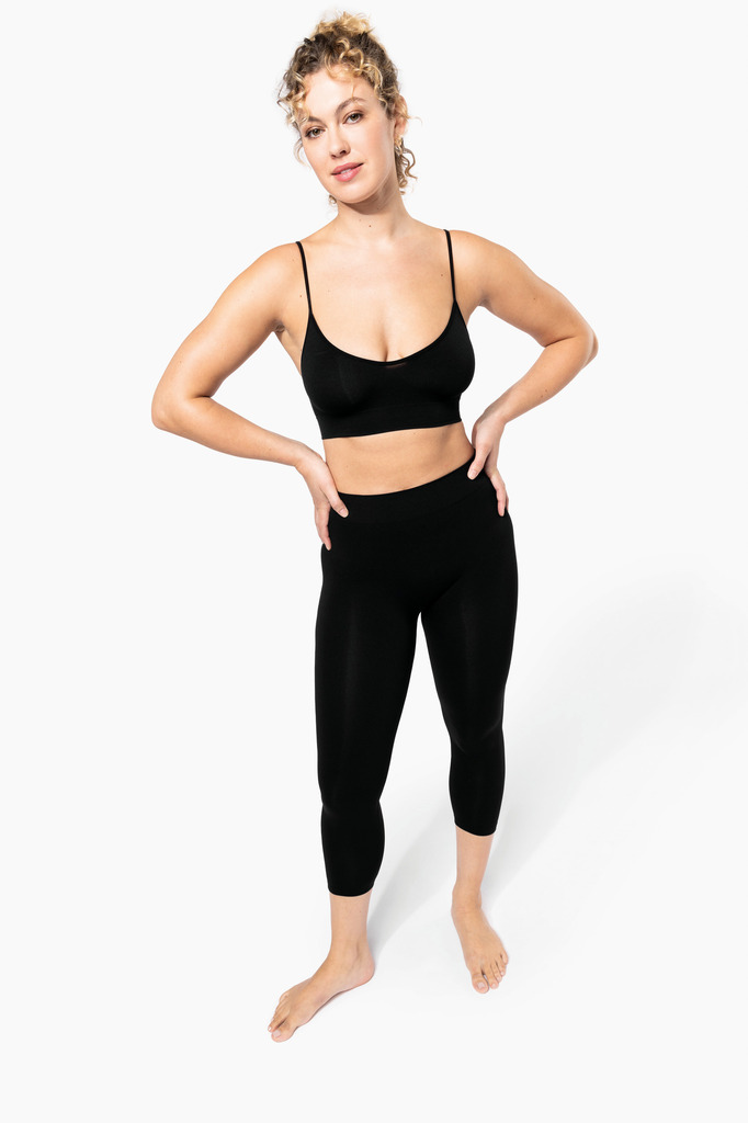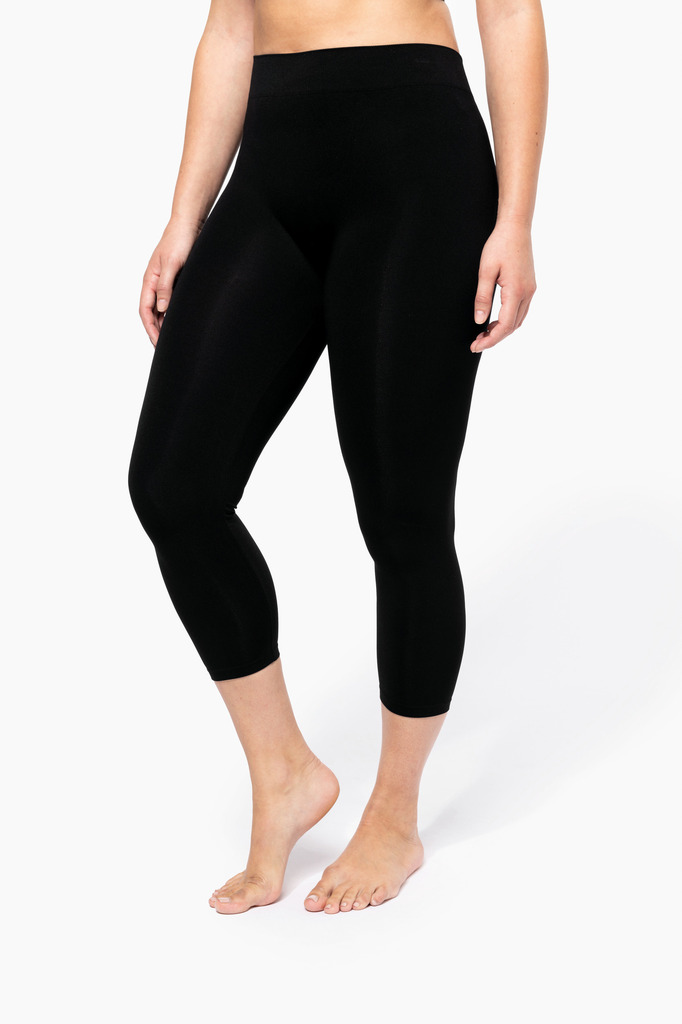 92% poliamida / 8% elastano. Concebidas com 55% poliamida reciclada pré-consumer. Corte skinny. Tricotadas sem costura para o máximo conforto e montado com uma costura de entrepernas. Acabamento da cintura em malha rib 1 x 1. Acabamento da perna com dobra na bainha. Fabricadas em Itália.